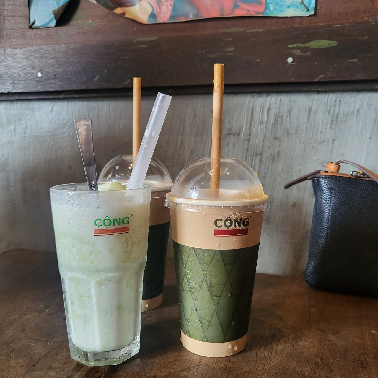원래는 환전을 한 후에 바로 점심을 먹을 계획이었지만 조식을 든든하게 먹은 탓에 건너뛰고 카페로 향했다. 베트남에 오면 꼭 데려가고 싶었던 카페가 콩카페였다. 베트남을 대표하는 카페이며 현지의 스타벅스보다 매장 수가 많다고 하니 베트남이 처음인 엄마와 이모에게 베트남 카페의 맛을 소개하기에 제격이었다. 두 사람은 시그니처 메뉴인 코코넛 스무디 커피를 주문했고 나는 나만의 최애메뉴 그린 라이스 스무디를 시켰다. 구수하면서도 달달하고 안에 찰떡같은 무언가가 함께 들어있어 씹는 맛도 있는 메뉴다. 다행히 두 사람 모두 코코넛 커피의 맛에 만족했고 시원한 바람을 맞으며 여유로운 시간을 가졌다.