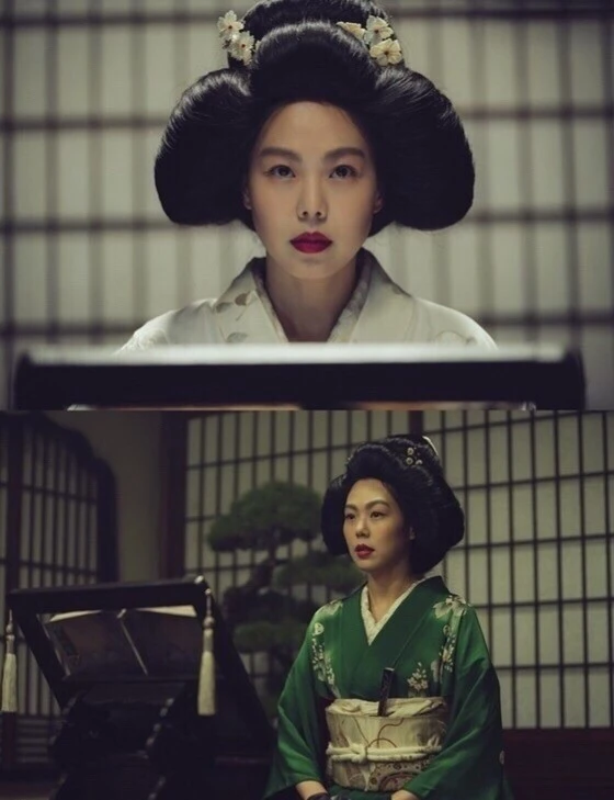 의상만 봐도 계급 차이가 두드러진다. 이모부에게 잦은 학대를 받은 외로운 귀족 아가씨 히데코. 처음 우아한 헤어스타일에 레이스 소재 원피스를 입고 장갑을 끼고 등장한다. 반면, 백작이 보낸 하녀 숙희는 허름한 한복을 입었다.