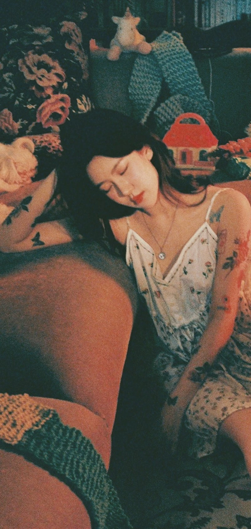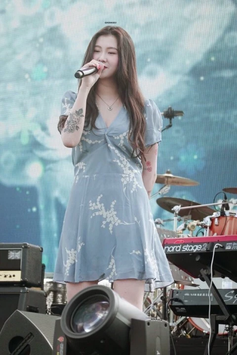 이런 빈티지 원피스, 타투나 꽃무늬같은 조그마한 디테일이 가장 본인의 매력을 잘 살려주는 것 같아요. 청순한 이미지를 가진 백예린님의 시그너처룩은 키치 펑크룩입니다.
