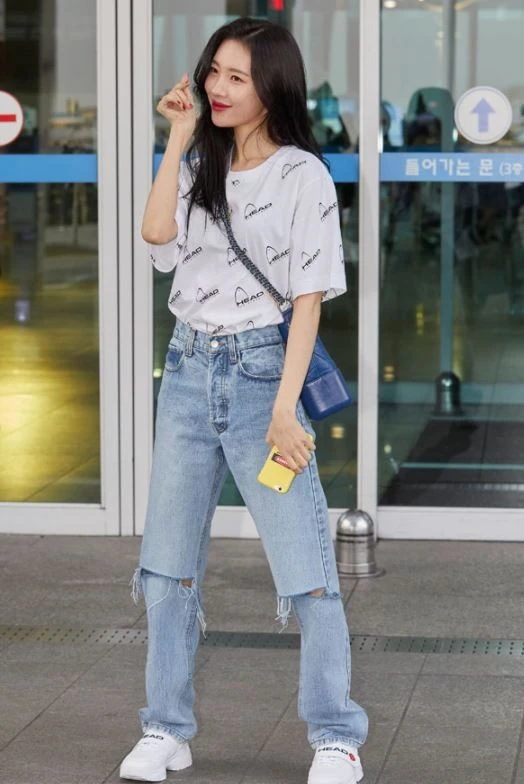 티셔츠와 신발 색깔을 맞춰서 통일감을 줬네요.