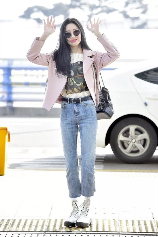 분홍색 라이더자켓은 좀 더 밝고 경쾌한 느낌,