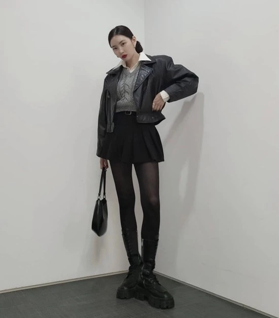검정색 라이더자켓은 시크한 느낌이 듭니다.