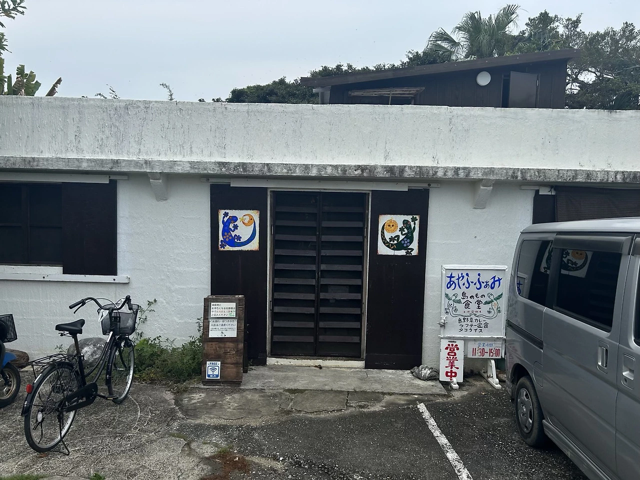 물놀이도 했겠다, 배가 고파져서 민가들이 모여있는 취락으로 자전거를 타고 갔다. ‘아야화미’ (분명 일본어는 아닌 것 같다)라는 동네식당으로 들어갔는데, 옛날 시골 학교 교실 같은 곳이었다. 곳곳에 오키나와의 장식품, 책들이 인테리어 되어있어 정감 가면서 촌스럽지 않은 느낌이 났다.