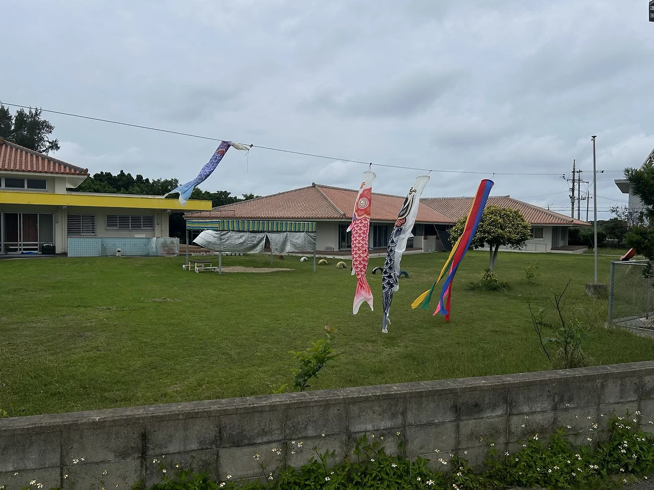 카페에서 쉬고 취락을 자전거로 돌아다녔는데, 사람 사는 곳이라 그런지 대개 평지라 돌아다닐만하였다. 이런 작은 섬에도 초등학교도 있고, 어린이집도 있었다. 특히 어린이집은 오키나와 전통 빨간 지붕으로 되어있어서 특색 있게 느껴졌다.