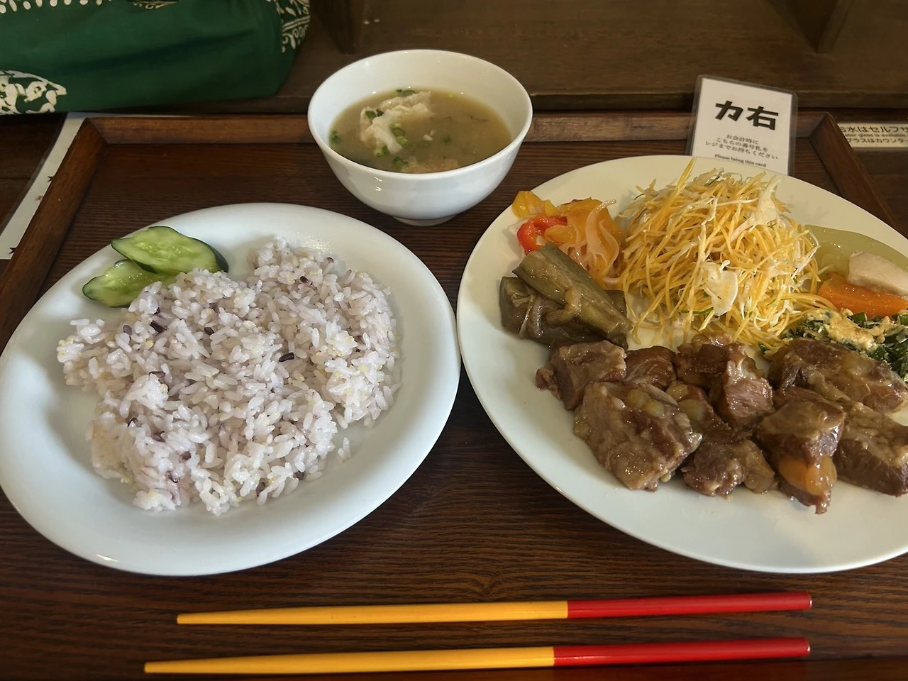 오키나와 전통 음식인 ‘라후테’ 정식을 시켰다. 라후테와 제철 야채, 돈지루 (돼지고기 된장국)이 나왔다. 이 라후테는 중국의 동파육이 오키나와로 건너오면서 변형된 것인데, 동파육보다는 조금 간이 덜 짭짤하다. 오히려 양념은 한국의 장조림과 비슷한데, 식감은 동파육과 같이 부드럽다. 고기가 입에서 살살 녹는다는 표현이 있는데, 그 말이 왜 나왔는지 이해가 될 정도로 너무 부드럽고 맛있었다. 여기저기 여행을 다녔다만 돼지고기 요리만큼은 오키나와가 단연 최고 아닐까 싶다. 이번에도 굉장히 만족스러운 식사였다.