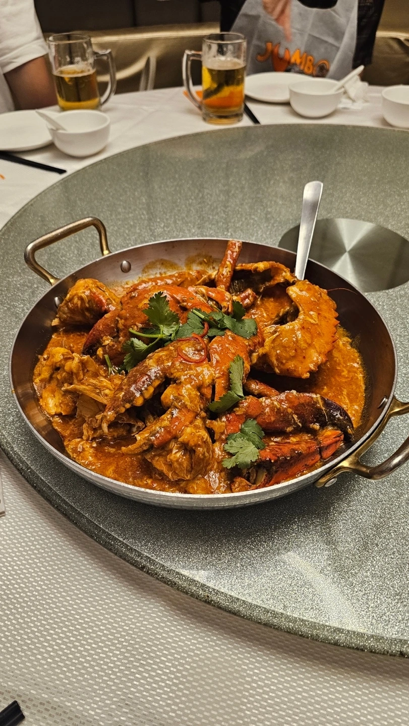 • 들어가 보니 고급중식당처럼 가운데 판이 돌아가는 식탁이 있었고, 칠리크랩, 블랙 페퍼 크랩, 시리얼 새우, 볶음밥, 야채 (이름은 까먹었다)를 시켰다. 칠리크랩은 내가 기대를 너무 한 탓인지, 상상 이상의 맛은 아니었다. 칠리크랩이지만 그렇게까지 맵지는 않고, 오히려 약간 달짝지근한 맛이 많이 났다. 매운 음식을 잘 못 먹는 나지만, 꽤나 맛있게 먹었다. 블랙페퍼크랩은 칠리크랩과는 달리 소스의 맛보다는 후추의 향으로 간이 되어있었다. 굳이 비유를 하자면 블랙페퍼크랩은 향이 화려하진 않아서 이쪽이 간장게장이라면 칠리크랩은 양념게장이랄까. 본인은 칠리크랩이 조금 더 맛있었다. 의외로 제일 맛있던 것은 시리얼 새우였다. 껍질을 벗겨서 바삭하게 튀긴 새우에 곡물을 끼얹은 요리인데, 이 시리얼이 달달하면서도 고소하고 바삭바삭하기도 하여 새우튀김의 맛을 한층 업그레이드시켜주었다.