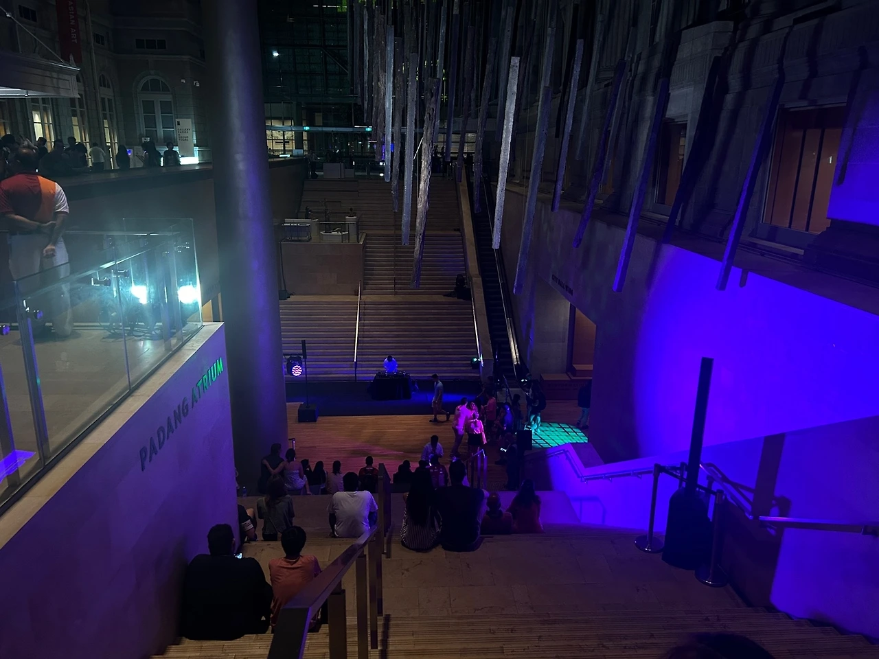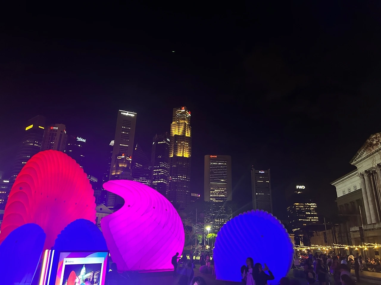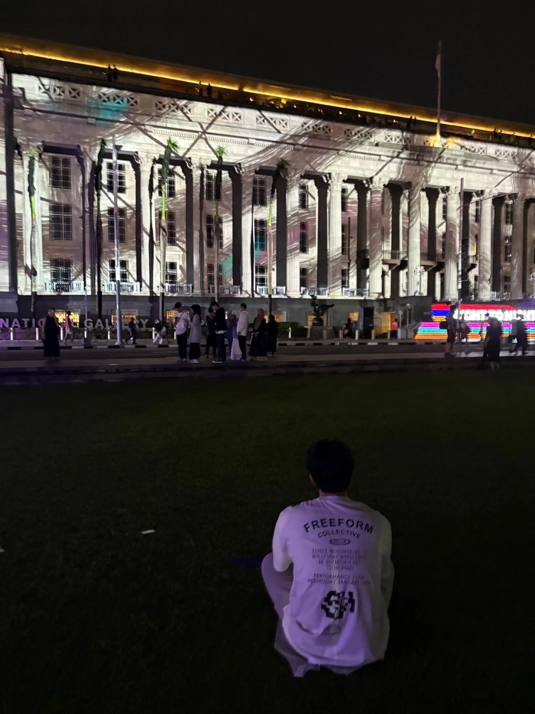 • 밥도 맛있게 먹었으니, 싱가포르의 야경을 즐기기 위해서, 내셔널 갤러리로 다시 갔다. 오늘 ‘Light to night’라고, 내셔널 갤러리 야외 뜰에서 갤러리 쪽으로 음악과 빛을 이용한 쇼를 하고 있었기 때문이다. 아티스트들이 설계하여 갤러리 건물에 형형색색의 빛을 쏘았는데, 건물의 입체감이 좀 더 살아나는 것 같았다.