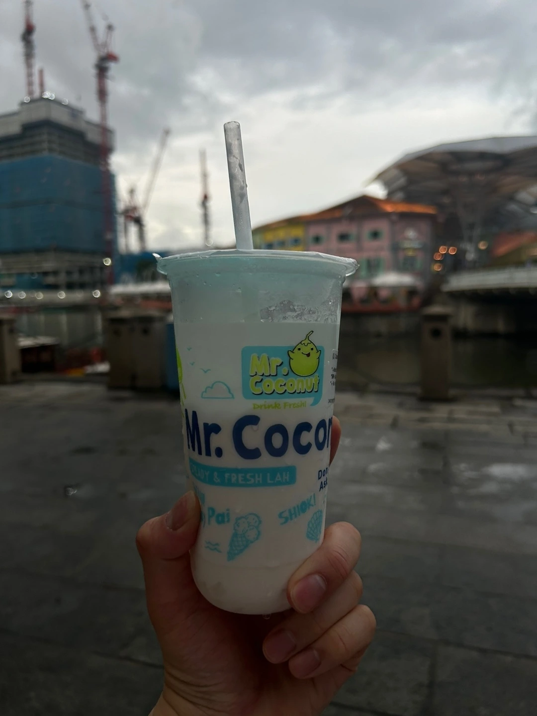 • 아까 이미 쇼핑몰도 좀 구경했고, 마리나 베이 쇼핑몰만큼의 가망은 없는지라 대충 보고 뜨려고 했는데, ’미스터 코코넛‘이라는 가게에 사람이 꽤 서 있었다. 뭔지 궁금하여 나도 일단 섰는데, 생각보다 대기시간이 정말 길었다. 미스터 코코넛은 체인점이 여러 곳이 있는데, 이렇게나 줄 설 정도면 꽤나 맛있는 게 아닌가 기대를 했었다. 줄을 서서 번호표를 받으니 30분 정도는 기다려야 하여 약속시간에 맞추지 못할 것 같았다. 계산을 취소하려고 카운터에 언제 나오냐고 얘기를 하니, 바로 하나 주면서 가져가라고 하신다. (어라 앞에 10팀은 있었는데…) 영문은 모르겠다만, 빨리 받으니 날름 감사하다고 하고 약속 장소까지 걸어가면서 코코넛 쉐이크를 마셨다. 당도 중간에 펄추가로 마셨는데, 달달하기도 적절하고 코코넛의 고소함도 느낄 수 있어서 줄을 서더라도 1일 1미스터코코넛 해야겠다고 다짐했다. 아 왜 한국에는 이게 없는 걸까…