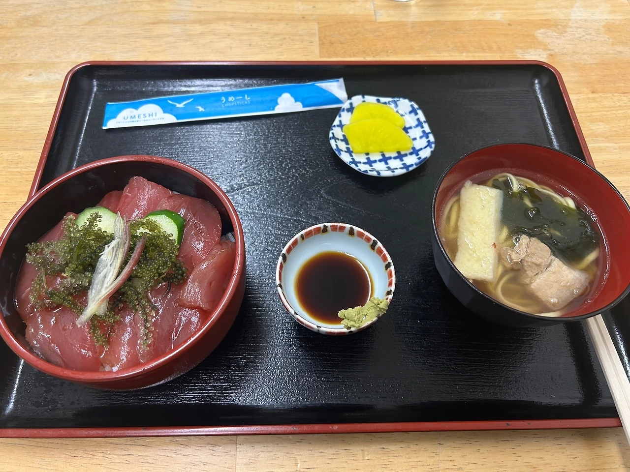 • 스노클링을 다 하고, 이시가키에서 마지막 식사를 하기 위해 리토항에 있는 작은 돈부리집에 갔다. 마구로동을 시켰는데, 어쩜 이렇게 참치에서 윤기가 나는지. 재료는 굉장히 단순하다. 따뜻한 밥 위에 참치 여러 점. 그리고 우미부도 (바다포도) 그리고 오이 두 점. 그런데 참치가 정말 찰기가 있으면서 부드럽고, 또 고소한 맛이 났다. 정말 보기만 해도 침이 고일 정도였다. 한국에서 참치를 먹을 때는 대개 냉동에 김을 쌌는데, 이렇게 생참치를 따뜻한 밥과 같이 먹으니 정말 별미였다. 만족할만한 식사였다.
