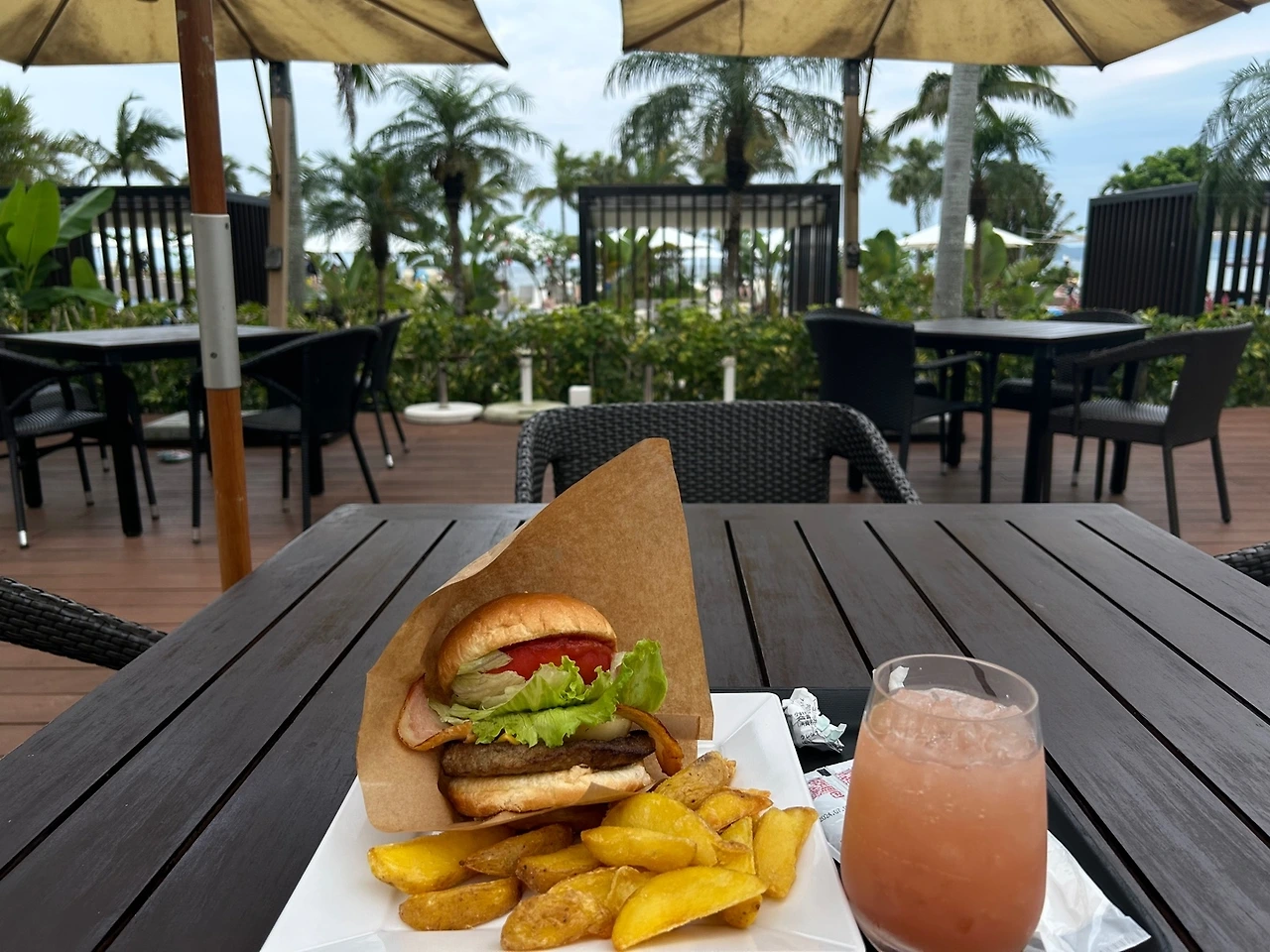 • 다시 서쪽해안가를 따라 달리면서 어제 봤던 후사키비치 리조트를 잠시 들렀는데, 이번엔 기분 좀 내볼까 싶어서 여기서 햄버거와 음료 한잔도 시켜보았다. 여기서 머무는 것은 아니다만, 여기서 식사하는 것만으로도 꽤나 사치를 부리는 기분이 들었다.