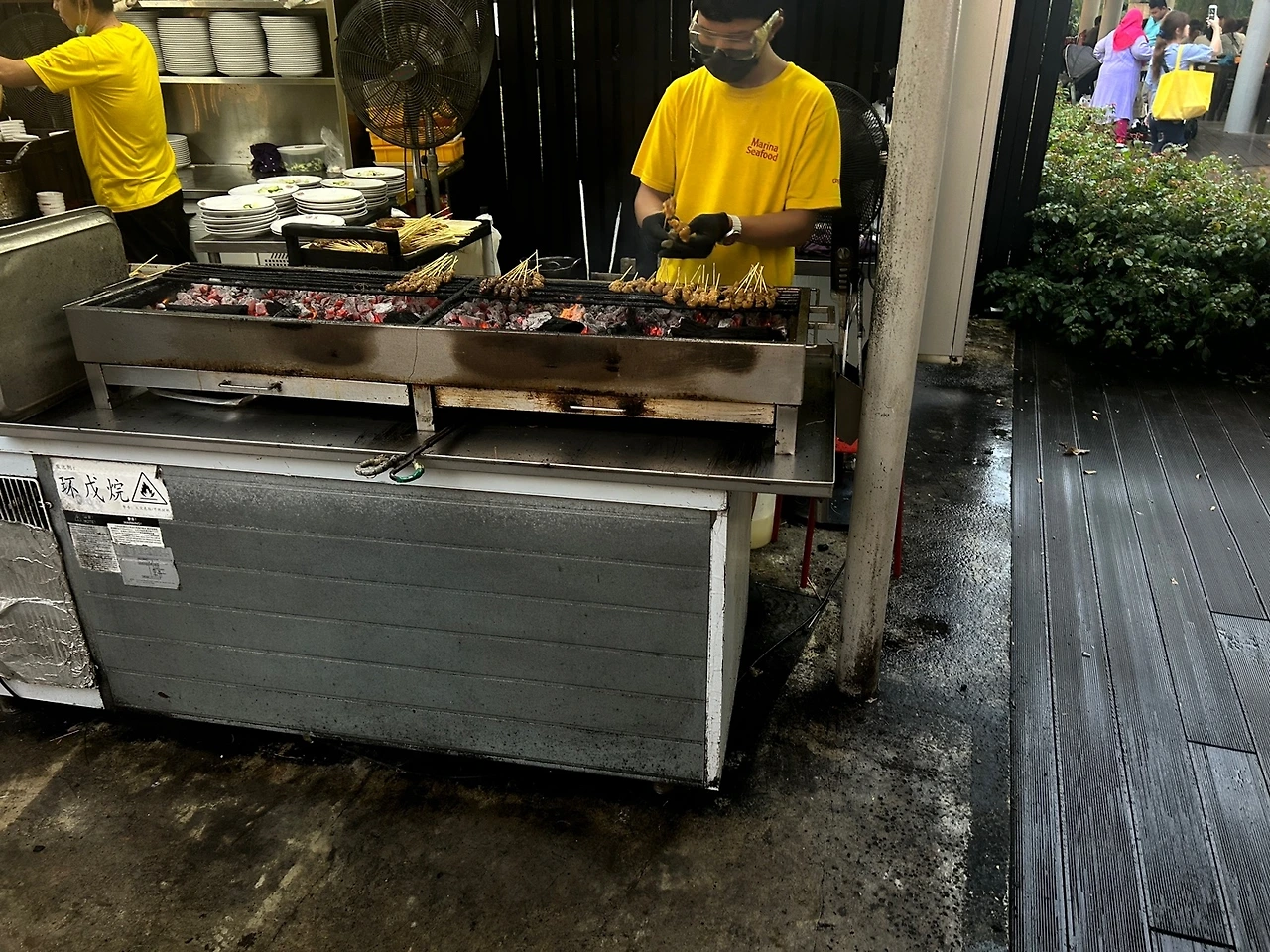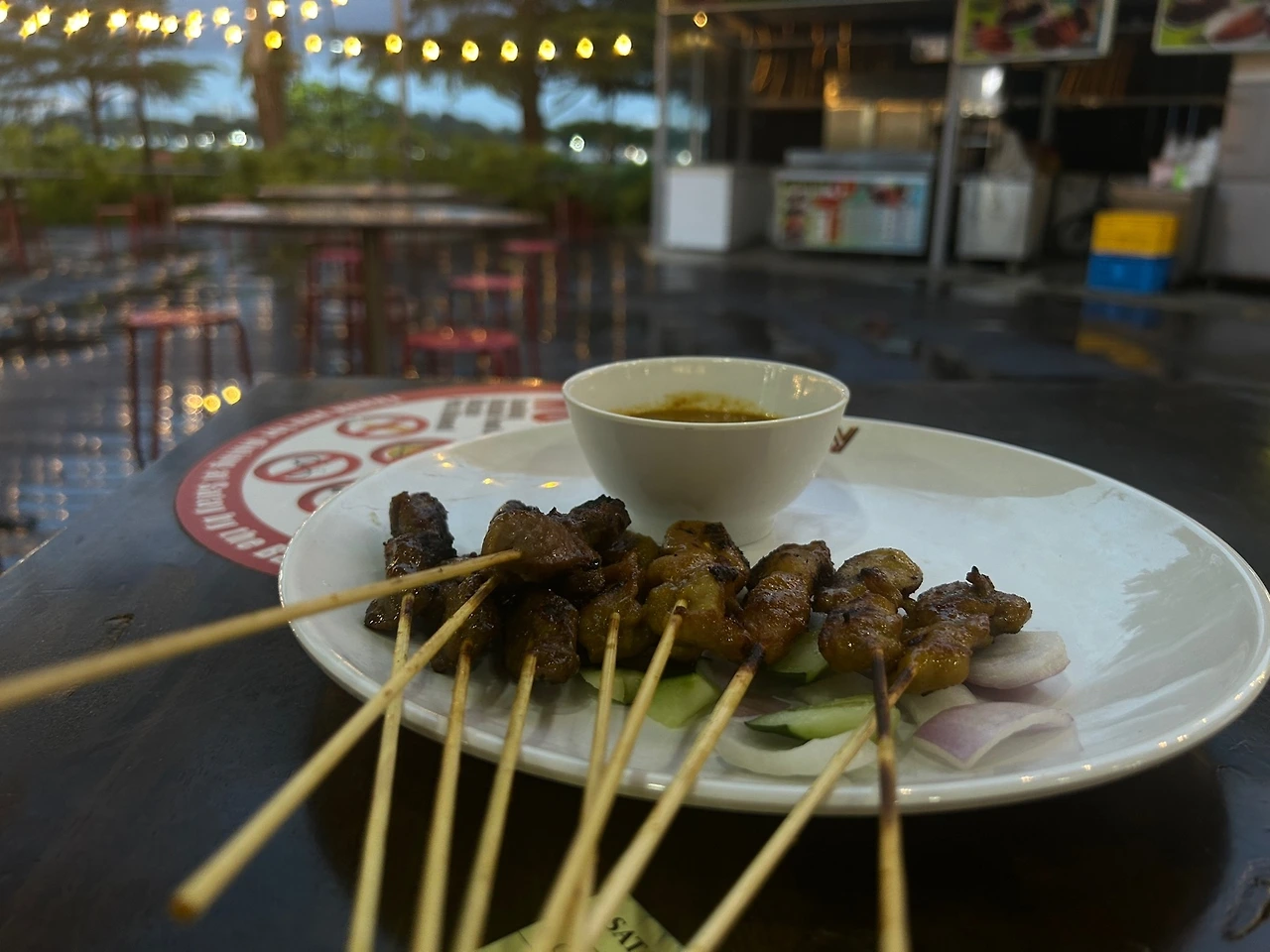 • 박물관에서 지하철을 타고, 그저께 구경했던 가든스 바이더 베이의 해안가 쪽을 따라 걸어갔다. 방금 비가 막 왔음에도 불구하고 바닷가를 따라 산책하는 사람들이 많이 보였다. 바닷가를 따라가다 보면, 사테 바이더 베이라는 곳이 나오는데, 사테를 파는 가게들이 모여있는 곳이었다. 참고로 이 ’사테‘라는 음식은 인도네시아, 말레이시아, 싱가포르 등지에서 주로 먹는 양념된 꼬치이다.