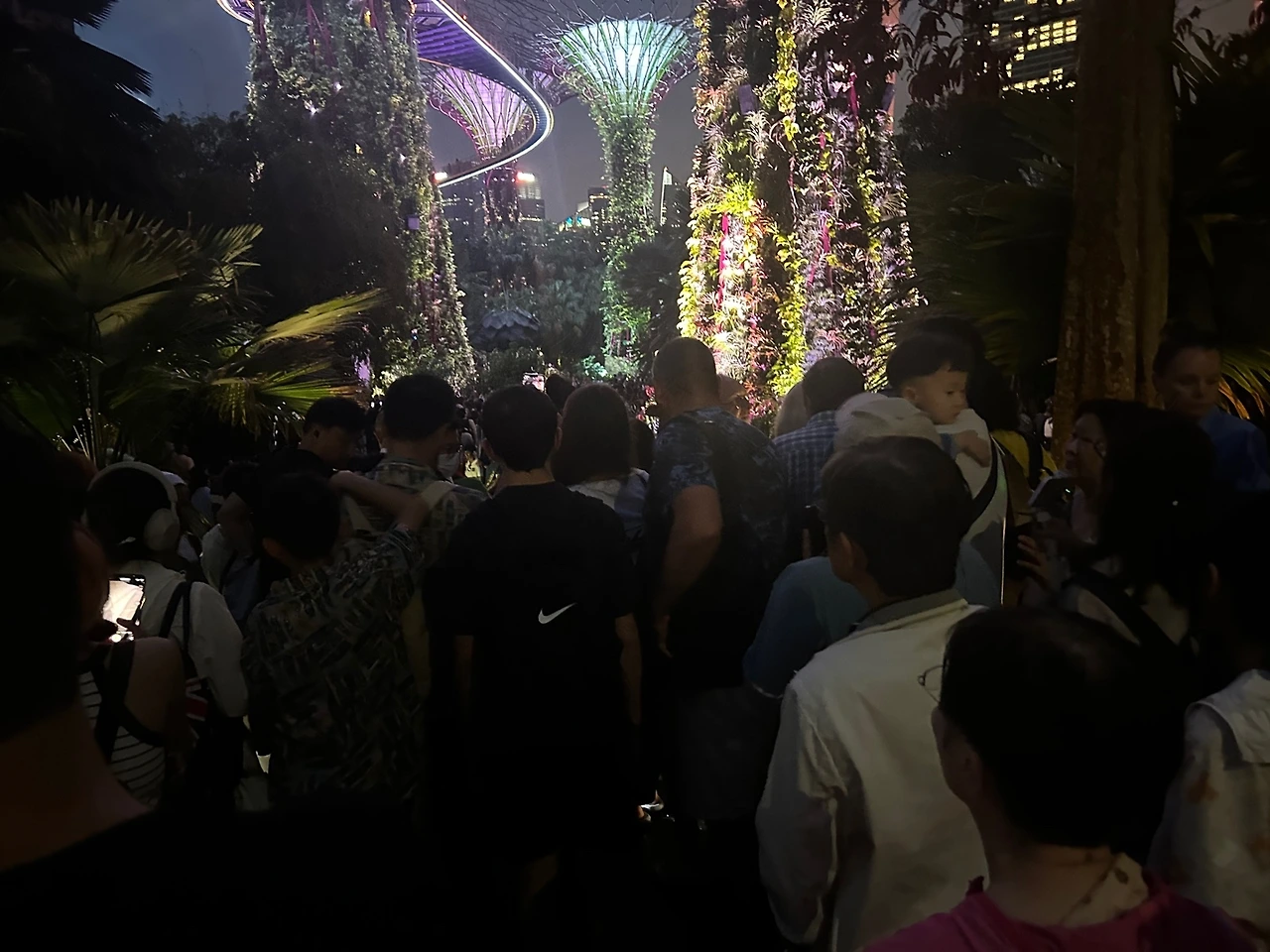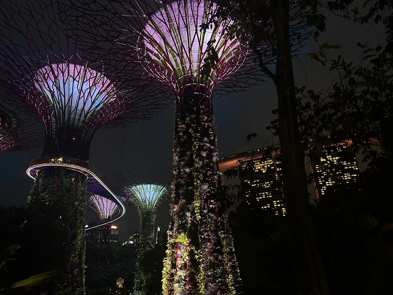 • 사테를 먹고 해변을 걸어서 그저께 갔던 가든스 바이더 베이를 다시 갔다. 다름 아닌 ’ 슈퍼트리 쇼‘를 보기 위함이었다. 매일 저녁 7시 45분과 8시 45분에 시작이 되는데, 나는 7시 45분 쇼를 보기 위해서 부지런히 걸어갔다. 7시 30분쯤에 슈퍼트리 주변까지 왔는데, 이미 쇼를 보기 위한 사람들이 웅성웅성 모여있었다. 시간이 되어 쇼가 시작되니 어디선가 상해탄 ost (1980년에 발표된 홍콩 가수 엽려의의 노래)가 흘러나오면서 슈퍼트리의 조명이 화려하게 형형색색 바뀌기 시작했다. 여러 나라의 유명한 노래 혹은 음악을 엄선했는지, 우리나라의 아리랑도 흘러나왔다. 좋은 노래들과 음악의 조합이 매우 아름다웠다. 다만, 너무 좋았다는 평이 많아서 내가 기대가 높았던 탓인지, 기대이상까지는 아니었던 것 같다.