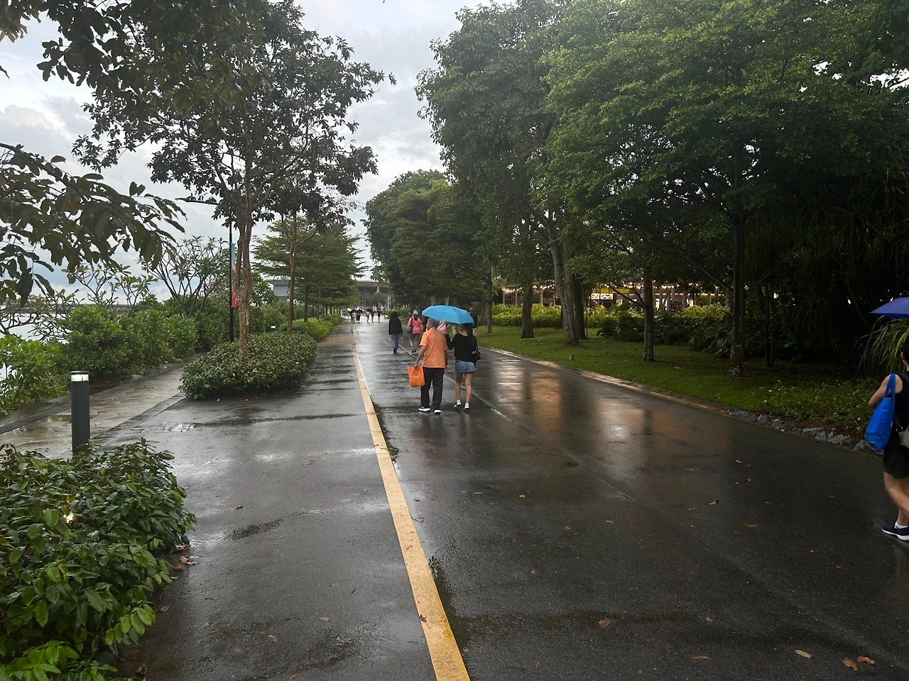 • 약 15분의 슈퍼트리 쇼가 끝나고 시내 쪽으로 가려는데, 하늘에 구멍이 뚫린 것처럼 비가 미친 듯이 쏟아졌다. 어지간히 오는 것이라면 맞고 가려는데 그럴 수가 없어서 약 30분을 바다를 봤다가 핸드폰을 했다가 하며 기다렸다. 바다가 보이는 경치라 비를 기다리는 것도 아주 지겹지는 않았다.