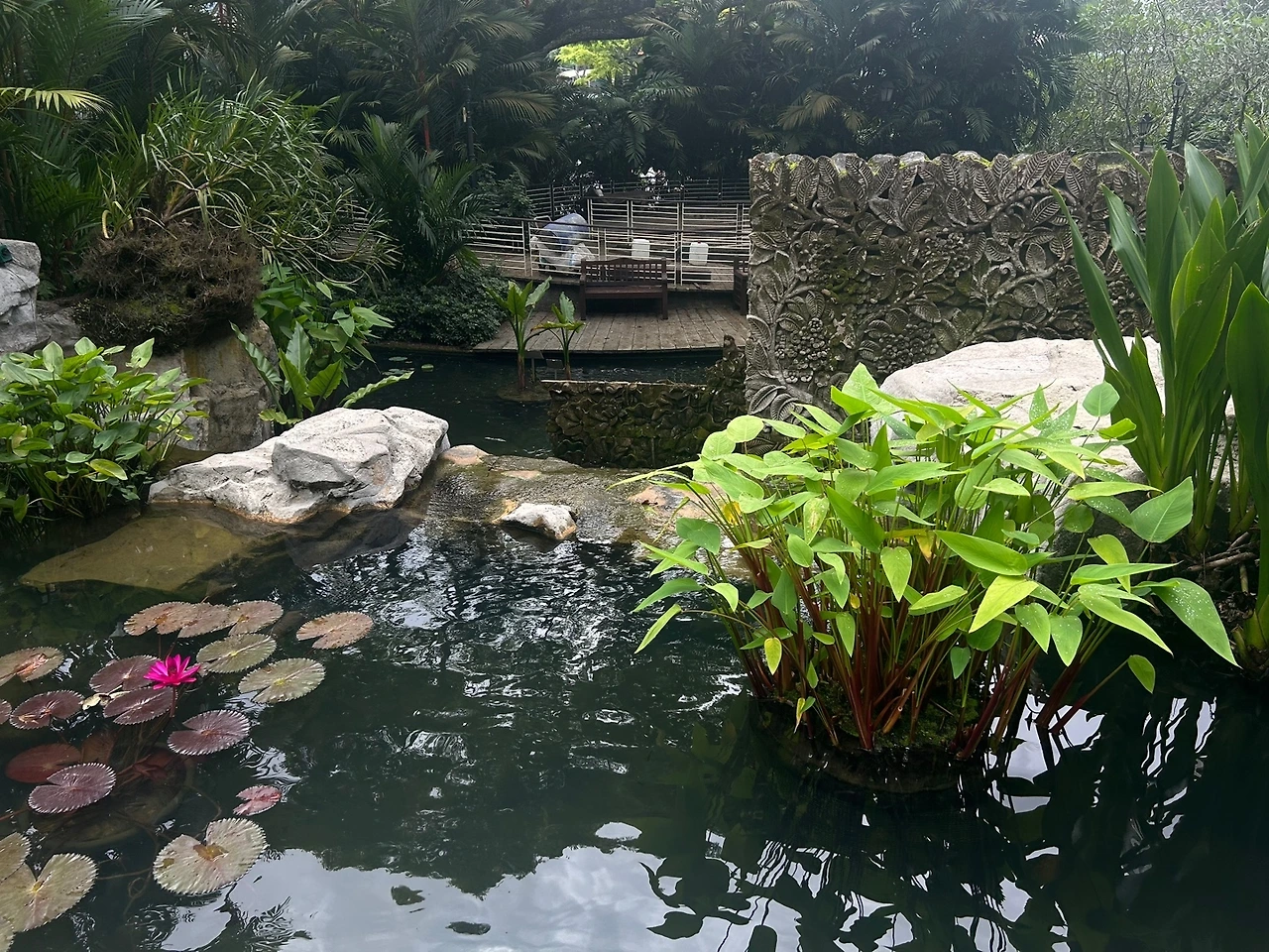 • 걷다 보면 식물들만 있는 것이 아니라 시원하게 쏟아지는 작은 폭포도 있고, 오리가 떠다니는 연못도 있다. 너무 서두르지 않고, 가끔씩 앉아서 이런 배경을 구경하는 것도 여유로워 좋았다.