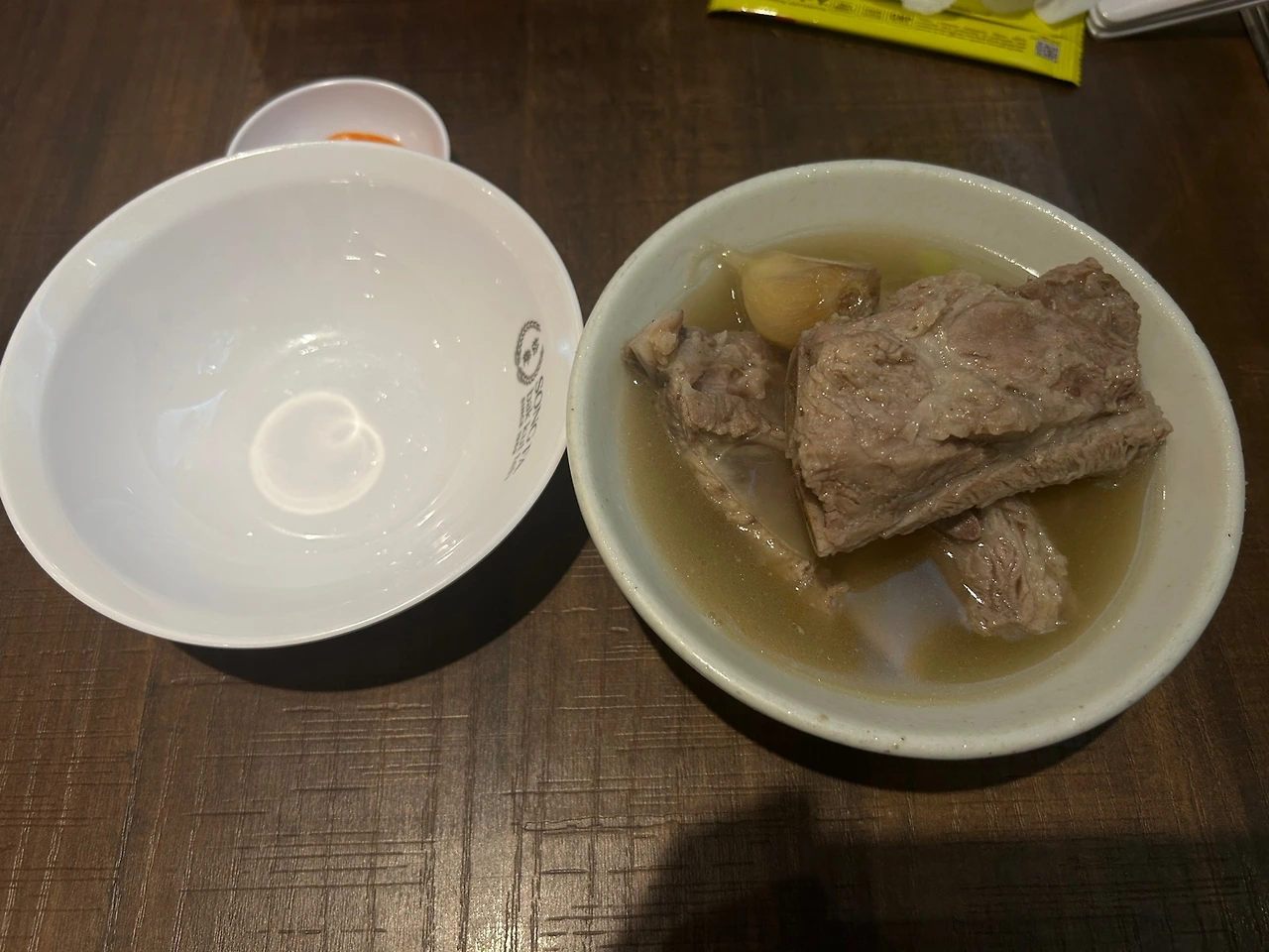 • 마사지받은 순간은 진짜 소리 지르고 싶을 만큼 아팠는데, 받고 나니 발이 정말 개운해졌다. 나와보니 4시가 조금 넘은 시간이었다. 아까 차이나타운 포인트에서 봤던 ‘송파바쿠테’라는 곳을 가고 싶어 그곳으로 다시 왔다. 참고로 ‘바쿠테’는 한자로 쓰면 ‘육골차’ (고기뼈 차) 정도인데, 민남어 단어라고 한다. 실제로 차는 아니고, 돼지갈비에 마늘과 여러 약재를 우려낸 탕이라고 생각하면 된다. 원래는 중국 복건성에서 먹던 음식이다만, 싱가포르인들도 즐겨 먹는 음식이 되었고, 살짝 후추향이 나는 돼지뼈 사골 베이스에 돼지갈비라, 한국인들도 그렇게 부담 없이 먹을 수 있을 것 같았다.