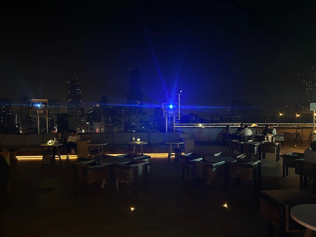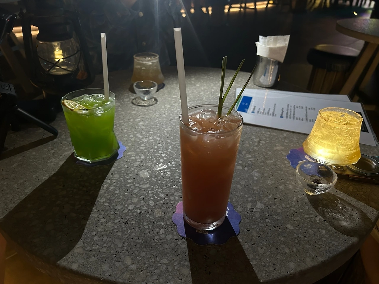 • 조금 걸어서 인디고 호텔에 도착하였다. 이곳에 투숙하려고 온 것은 아니고, 맨 위층에 있는 루프탑 바에 가기 위함이었다. 맨 위층에 올라가 보니 밤 10시가 되어 바람은 딱 선선하고, 가오슝 시내가 다 보여서 경치가 멋졌다. (상하이, 홍콩, 싱가포르만큼은 아니다만…) 각자 칵테일을 하나 시켰는데, 가격도 2만 원이 좀 안되는지라 꽤 합리적이었다.