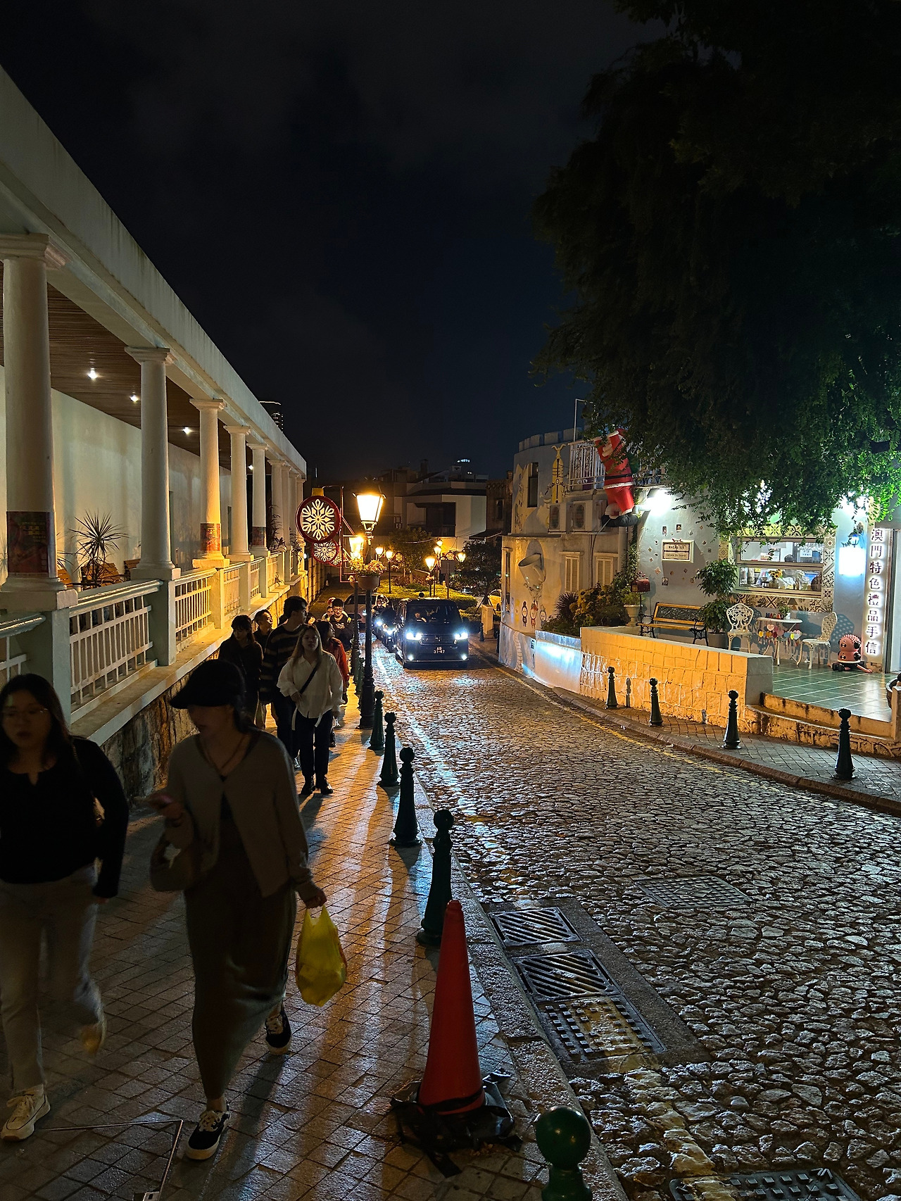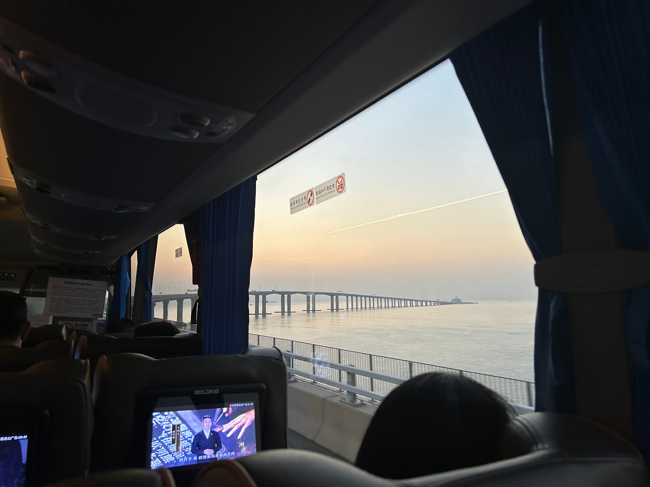 우선 말하자면 홍콩에서 가는 버스는 페리터미널에서 타고 쭉 마카오 타이파까지 가는 것이 아니다. 홍콩 출입국심사장이 홍콩 공항 근처인 란타우 섬에 있기 때문에 란터우쪽까지 가서 심사를 위해 버스에서 먼저 내려야 한다. 홍콩이 중국과 다르게 무비자 입국이 가능하도록 특별행정구로 지정되었기에 나가는데도 일종의 출입국 심사가 필요한 것이다. 출입국 심사대를 통과하면 아까 왔던 버스를 타는 것이 아니다. 출입국 심사를 통과하고 나면 버스가 여러 대 기다리고 있는데, 내가 붙인 스티커를 보고 직원들이 '몇 번에 가서 저걸 타세요' 해준다. 알아서 날 찾아주는 것도 아니기 때문에, 내가 직원처럼 보이는 사람한테 가서 무엇을 타냐고 물어봐야 한다. 멀뚱멀뚱 있으면 버스가 그냥 가버릴 수도 있었을 것 같다. 그렇게 새로운 버스를 타고 길디긴 강주아오 대교를 건넌다. 영종대교를 건너고 인천공항을 가는 것과 뷰가 흡사했으나, 훨씬 긴 것 같았다. 어느새 해가 져서 어스름이 끼었을 무렵 마카오 본토에 도착하게 되었는데, 여기서도 입국심사를 위해 내려야 했고, 내가 가려는 타이파를 가기 위해서 새로운 버스를 찾아야 했다. 물론 직원들이 친절하게 '이걸 타세요' 해주진 않았기 때문에 물어물어 타이파 가는 버스 타는 곳을 찾았는데, 그새 버스가 가버린 것이다 (!). 옆에 버스 기사님한테 타이파 가는 버스가 어디 있냐고 물어보니 방금 막 갔다고 하신다. 아무리 마카오땅이 좁아도 터미널에서 일단 시내는 나가야 하는데, 이거 택시를 불러야 하나 생각하던 참에 20분 후에 온다고 하신다. 보통화로 어느 호텔에 가냐고 하시니 베네치아 호텔에 간다고 이야기했다.