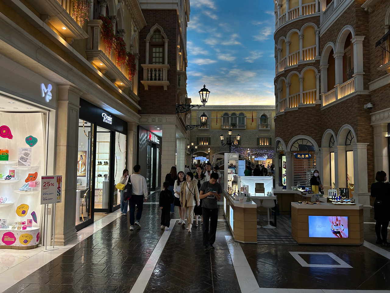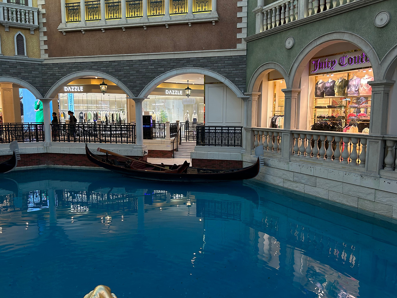 호텔 카지노라고 해서 카지노만 있는 것이 아니다. 에스컬레이터를 타고 2층으로 올라가면 상점가가 있는데, 시계, 옷 등을 파는 명품샵부터 시작해서 나이키나 뉴발란스 같이 무난하게 살 수 있는 샵들도 있었다. 아마도 '돈을 땄으면 여기서 쓰고 가세요' 하는 의도로 만든 것 같다. 상점뿐만 아니라 내가 좋아하는 레고 매장도 있었고, 에그타르트 집도 있었는데, 맛이 꽤 좋은지 사람들이 제법 줄도 서 있었다. 상점가 중앙에는 베네치아 호텔이라는 이름에 걸맞게 수로를 파놓고 곤돌라까지 있었다. 밤이라 그런지 곤돌라를 타는 사람은 없었는데, 낮에는 뱃사공도 따로 있어서 타볼 수도 있는 것 같았다. 호텔 안에 카지노가 있고, 상점가도 있고, 수로를 파놓고 곤돌라까지 안에서 탈 수 있다는 것이 놀라웠다.
