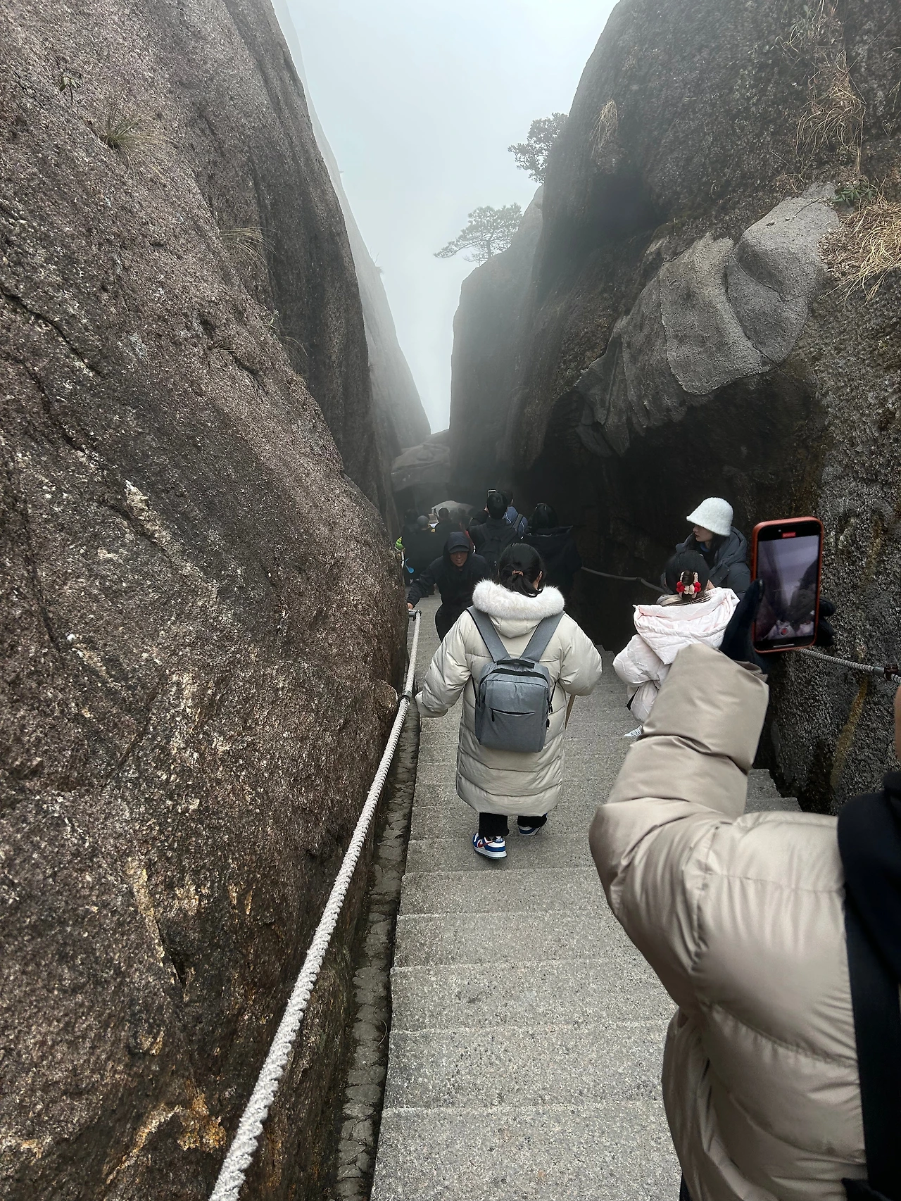 • 옥병루 가는 길은 좁은 바위틈이었는데, 이곳도 또 아까 봤던 황산 풍경과 다른 멋이 있었다. 다만 아까 오전 8시부터 부지런히 걸어서 그런가, 오후 2시가 넘은 시점에서는 조금 쉬고 싶다는 생각이 조금 더 많이 들었다.