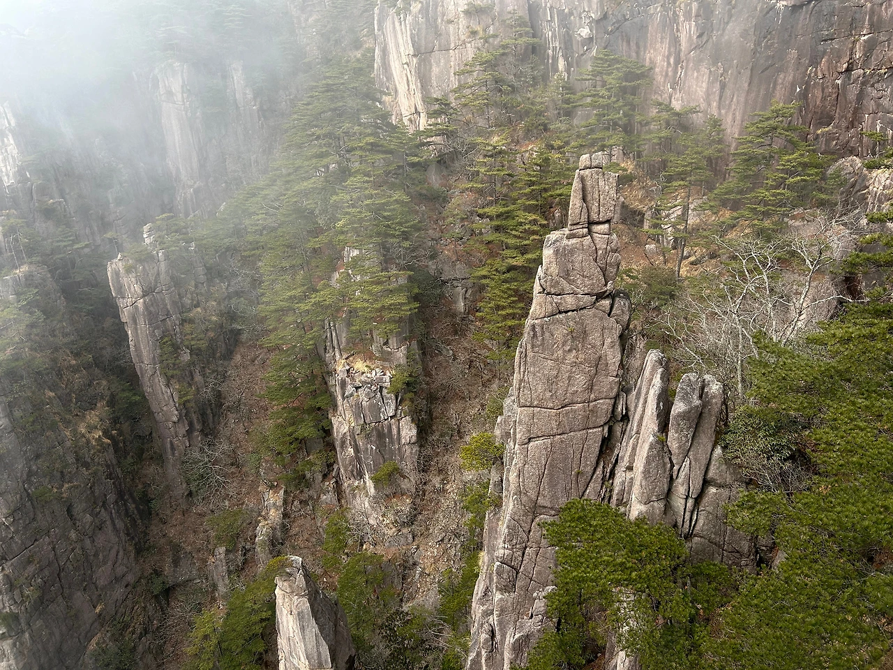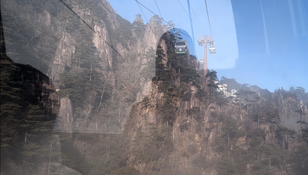 • 황산이 확실히 높긴 높은지, 장장 20-30분쯤을 케이블카를 타고 올라갔다. 케이블카 치고 비싼 게 납득은 되었다. 오늘은 살짝 연무가 꼈다가 갰다가 해서 기암괴석과 더욱 잘 어우러지는 날씨였다.