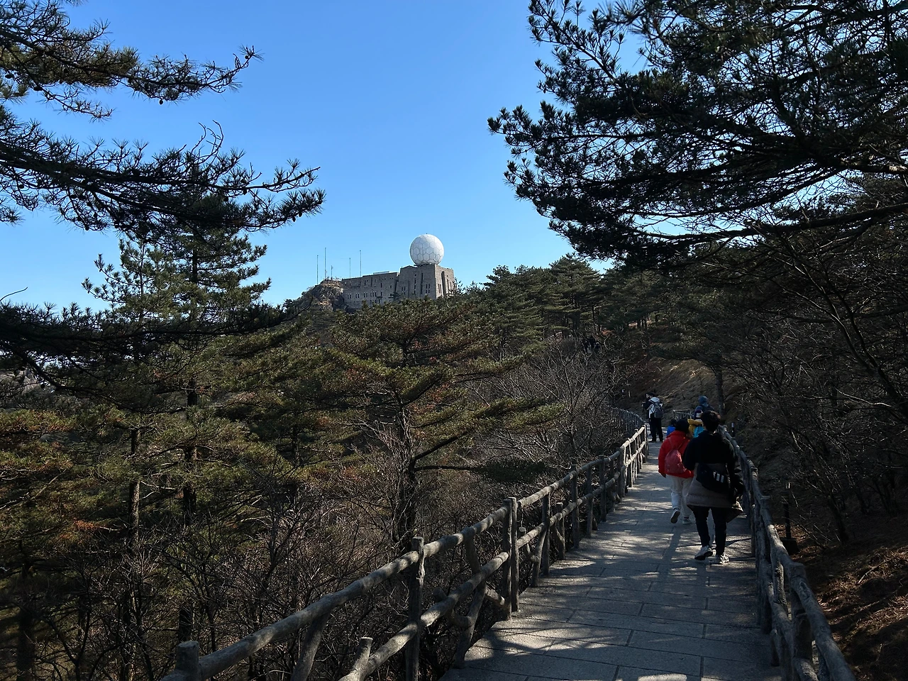 • 서해호텔에서 좀 쉬고 대협곡으로 올라 가렸는데, 매우 안타깝게도 한겨울인지라 안전상의 이유로 협곡은 임시로 폐쇄가 되었다. 어쩔 수 없이 비래석으로 꺾어서 광명정 쪽으로 올라갔다. 저 멀리서도 광명정에 솟아있는 현대식 건축물이 하나 보이는데, 뜬금없기도 하고, 산과 은근 잘 어울린다는 생각도 들었다. 나중에 찾아보니 여긴 기상관측소라고 한다.