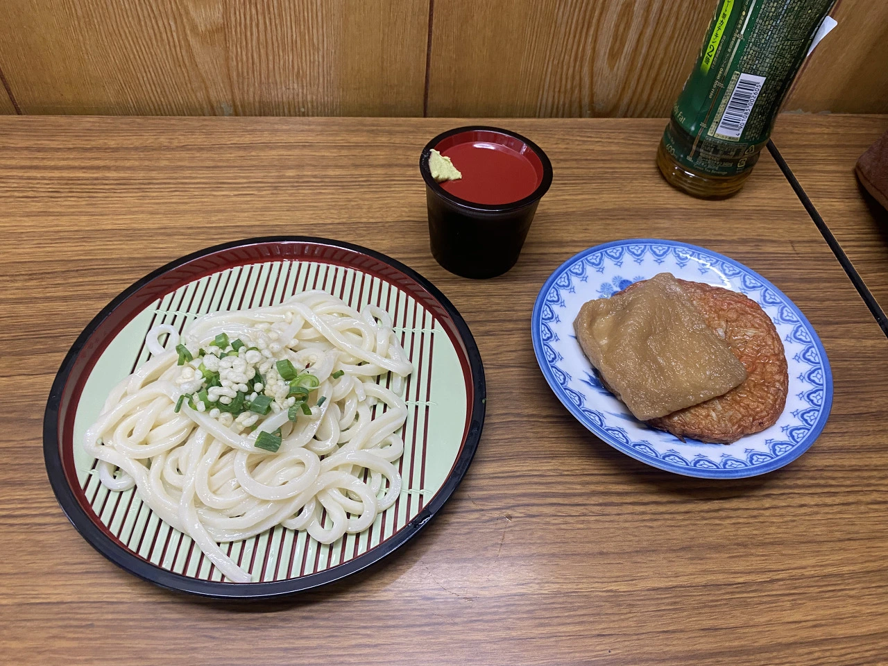 자루우동을 시켰는데 가격이 220엔이다. 이게 말이 되나 싶었다. 너무 싸서 오뎅 하나, 유부 하나도 같이 주문했는데 그래도 400엔이 넘지가 않았다. 뭔가를 추가로 더 시켰는데 4000원이 안 되는 값으로 한 끼가 가능하다니! 우동의 구조는 매우 단순했다. 삶아서 따로 얹은 자루우동과 음식점 물컵보다 조금 더 큰 다시 (육수) 그리고 약간의 와사비. 아무리 그래도 야채같은게 조금은 들어가야 육수 맛을 제대로 구현할 수 있지 않나 의심이 생겼다. 그나마 실파만 아주 약간 뿌릴 수 있었다. 하지만 우동을 육수에 찍어서 한입 먹는 순간 그런 의구심이 싹 사라졌다. 면이 너무 탱탱하면서 탄력이 있는 것이다. 지금까지 한국에서 먹어본 그 어떤 우동보다도 이 220엔짜리 우동이 압도적으로 더 맛있었다. 육수는 간장 베이스인 것 같은데, 적절하게 진해서 굳이 육수와 면을 섞어서 끓이지 않아도, 찍어먹으면 적절히 간이 배어있게 되어있었다. 속으로 감탄하면서 연신 '말도 안 되는 맛이다. 내가 지금까지 먹은 우동은 뭐였지?'라고 생각하면서 먹었다. 괜히 이런 허름한 집이 평점을 4.0 이상 받진 않은 것 같다.