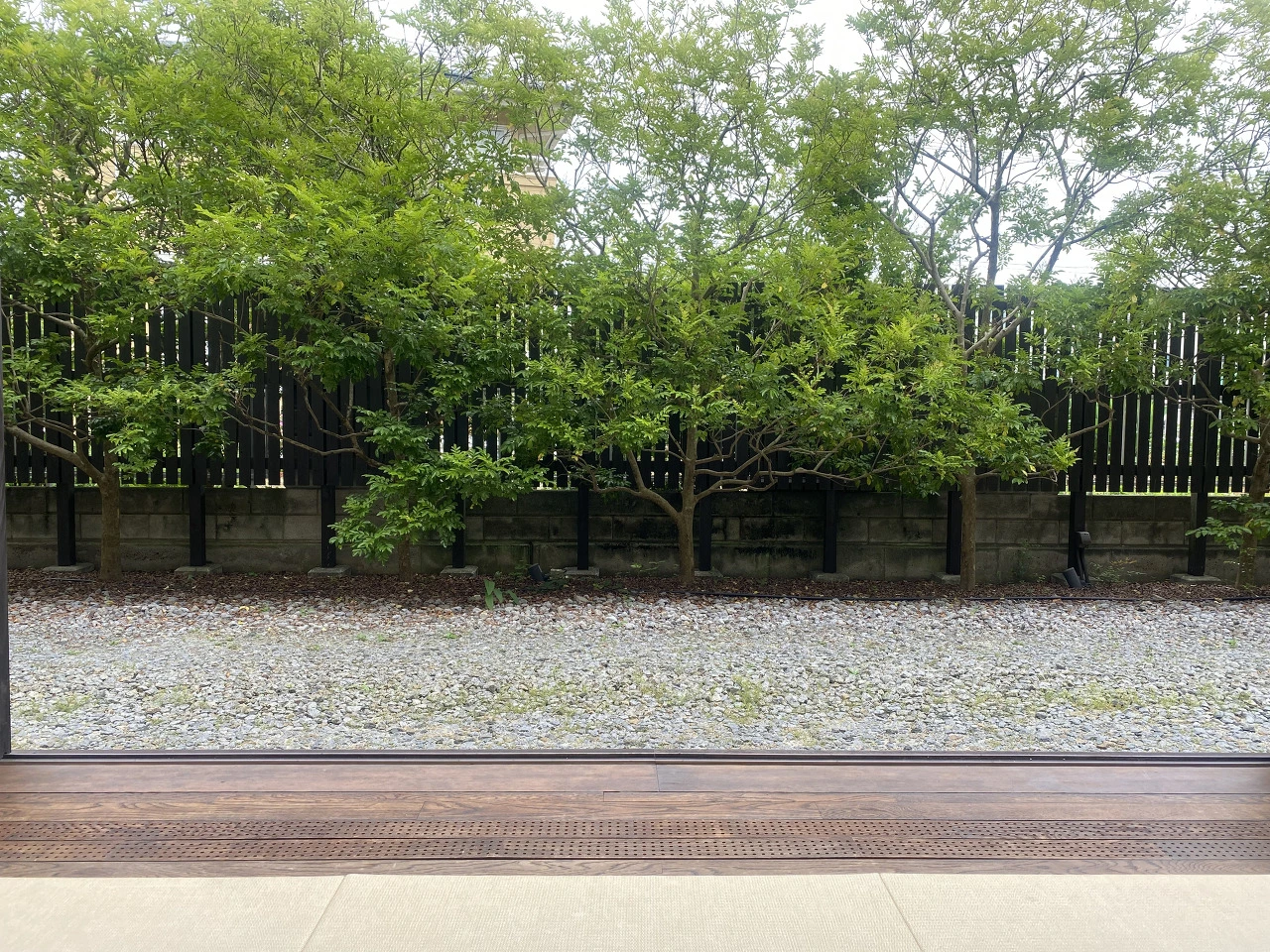 기분 좋게 온천을 하고 왔는데, 첫날부터 비가 추적추적 내렸다. 세차게 쏟아지는 것은 아닌지라 그냥 맞고 갈까 싶어서 비가 조금이나마 소강되길 기다렸다. 아까 봤던 복도 왼쪽에 일본식 정원을 볼 수 있는 좌탁이 구비되어 있어 가만히 앉아서 정원과 비 구경을 했다. 주변도, 마음도 조용해졌다.