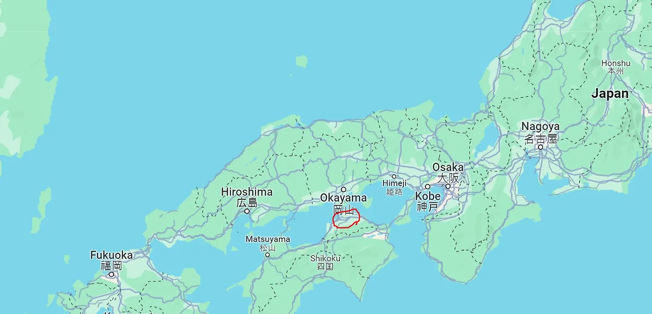 "거리는 오사카와 후쿠오카 사이쯤 되는데, 시코쿠에 있어"
