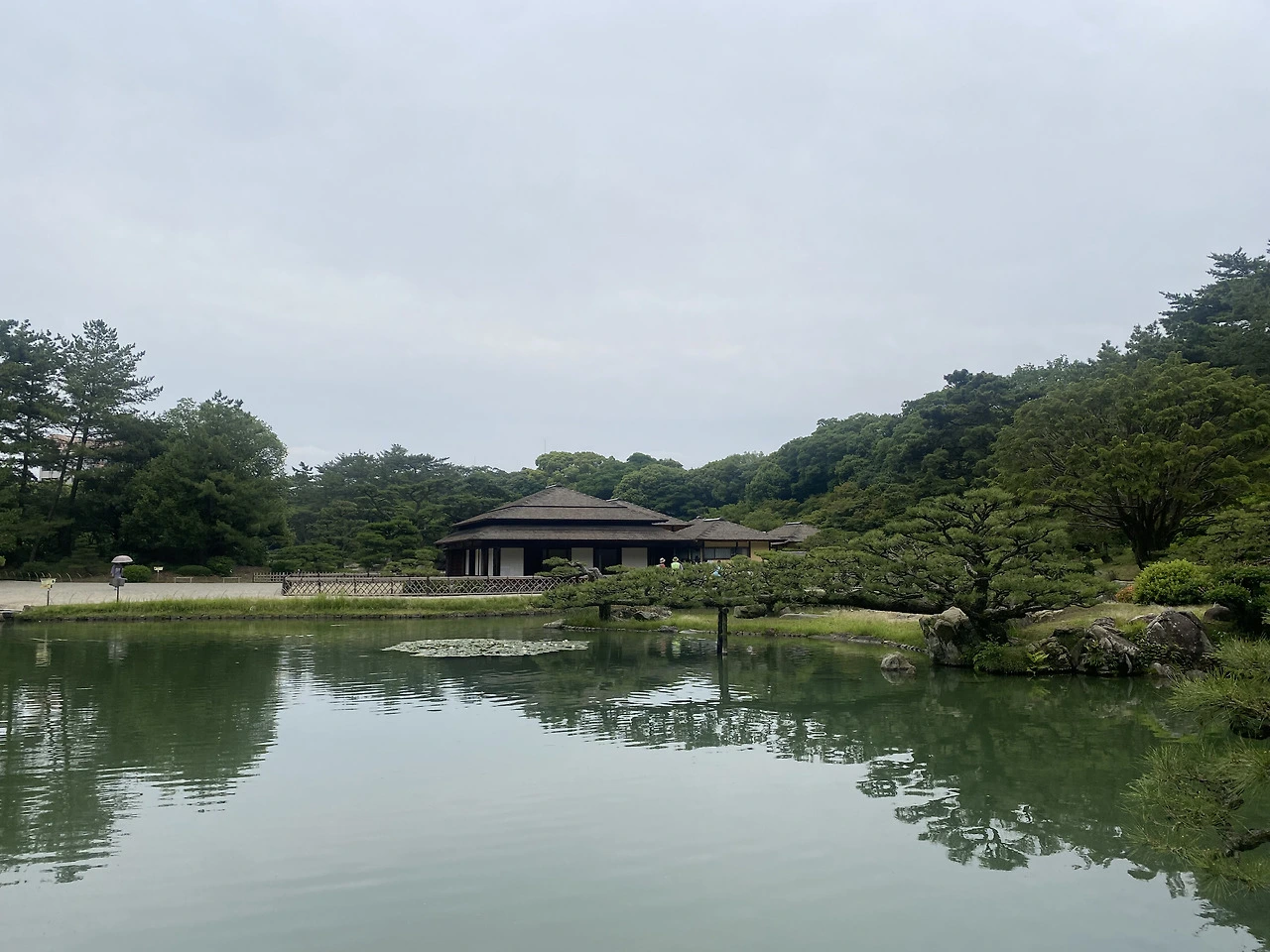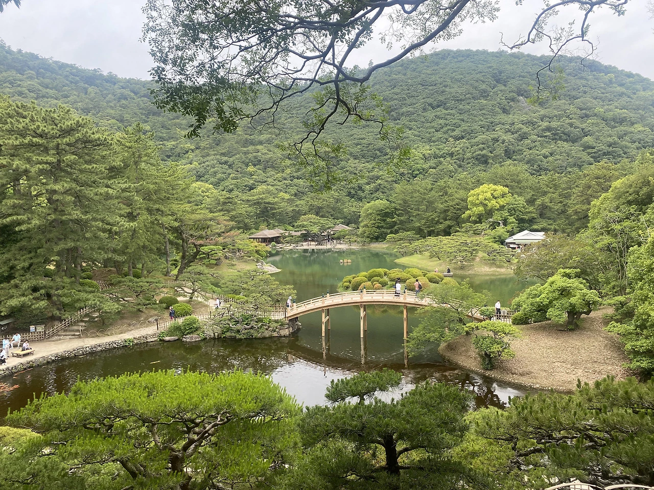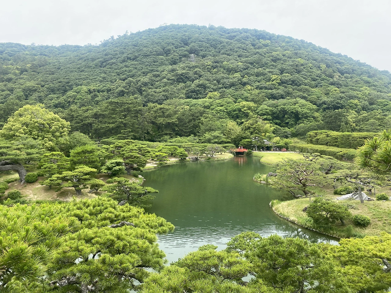 이곳은 이코마 가문의 영지일 때 이코마 타카토시가 조성한 정원 및 별장으로 타카마쓰가 마쓰다이라 가문의 영지가 된 이후로도 계속 확장되어 지금은 거대한 정원이 되었다. 천천히 구석구석 보려면 정말 2시간도 부족한 이곳은 정원 뒤쪽의 시운산과 어우러져 거대한 한 폭의 풍경화 같은 곳이었다.
