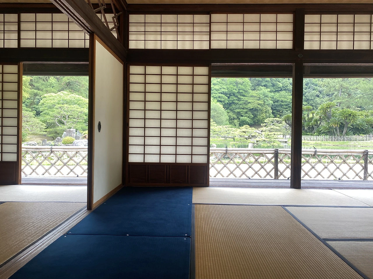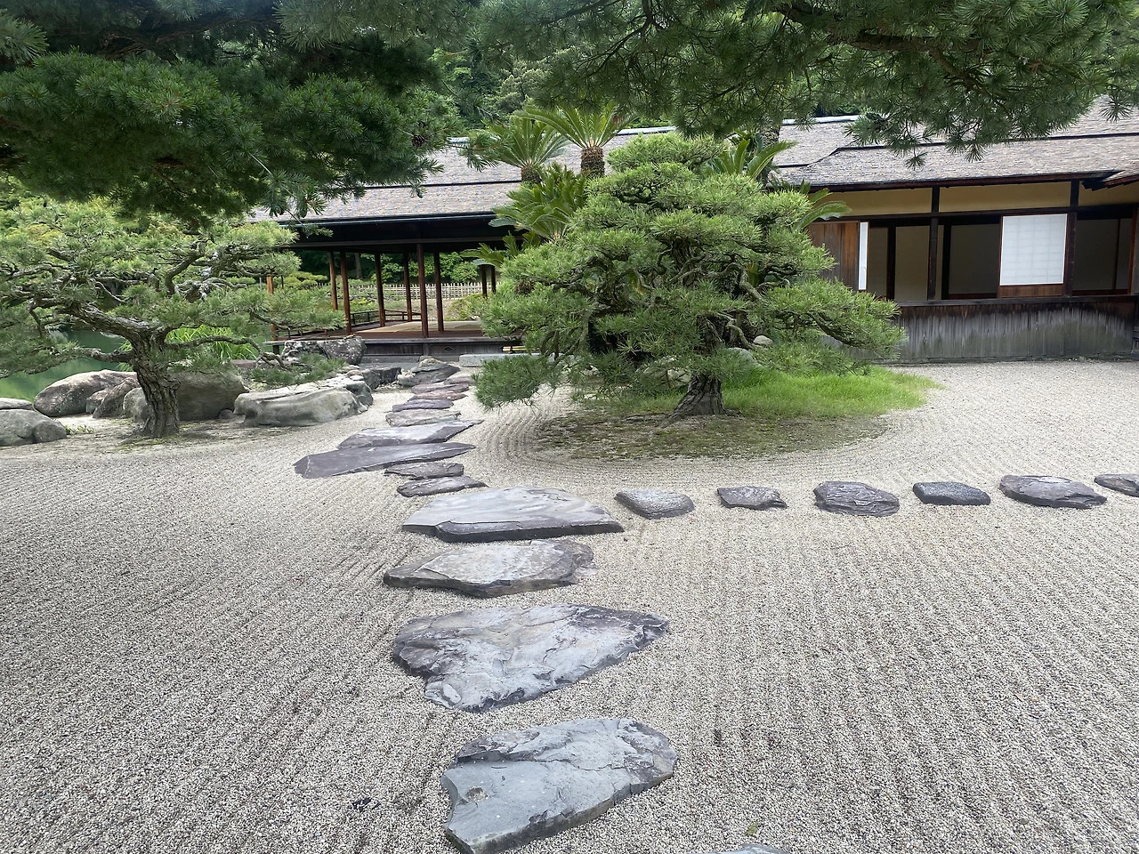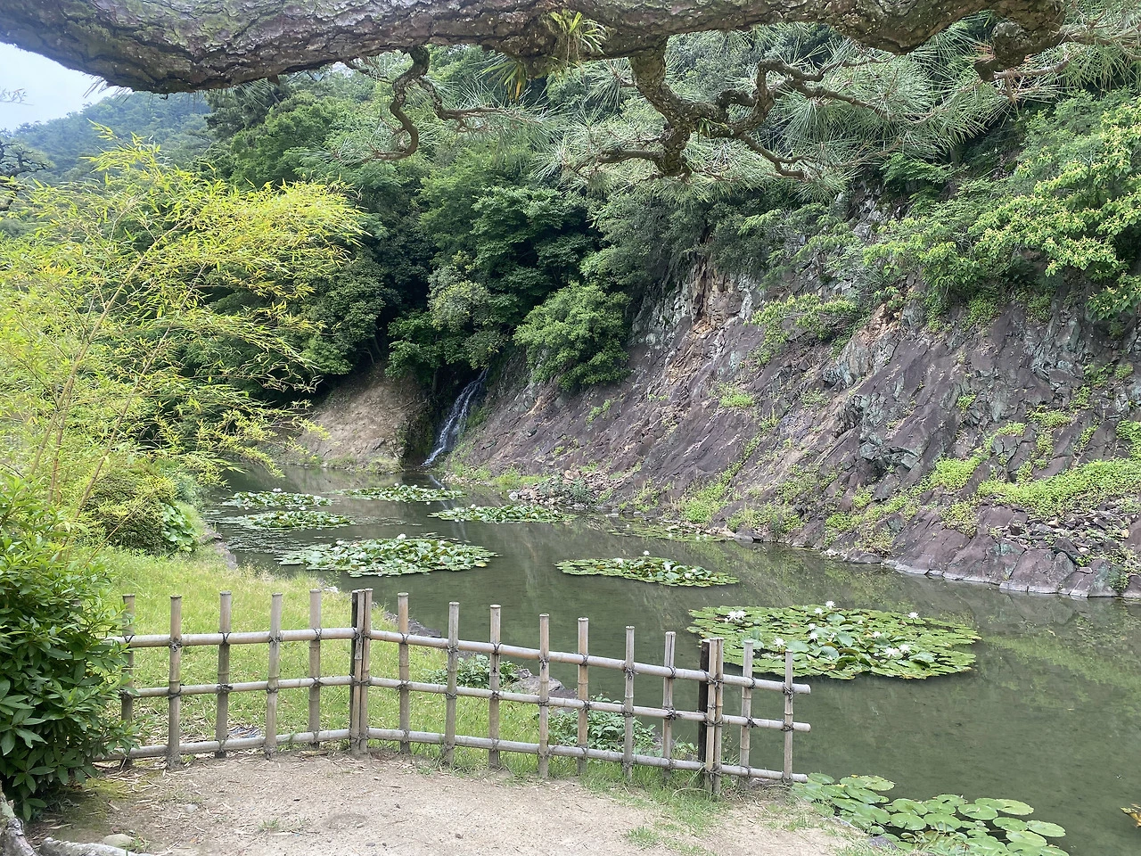 이곳은 이코마 가문의 영지일 때 이코마 타카토시가 조성한 정원 및 별장으로 타카마쓰가 마쓰다이라 가문의 영지가 된 이후로도 계속 확장되어 지금은 거대한 정원이 되었다. 천천히 구석구석 보려면 정말 2시간도 부족한 이곳은 정원 뒤쪽의 시운산과 어우러져 거대한 한 폭의 풍경화 같은 곳이었다.