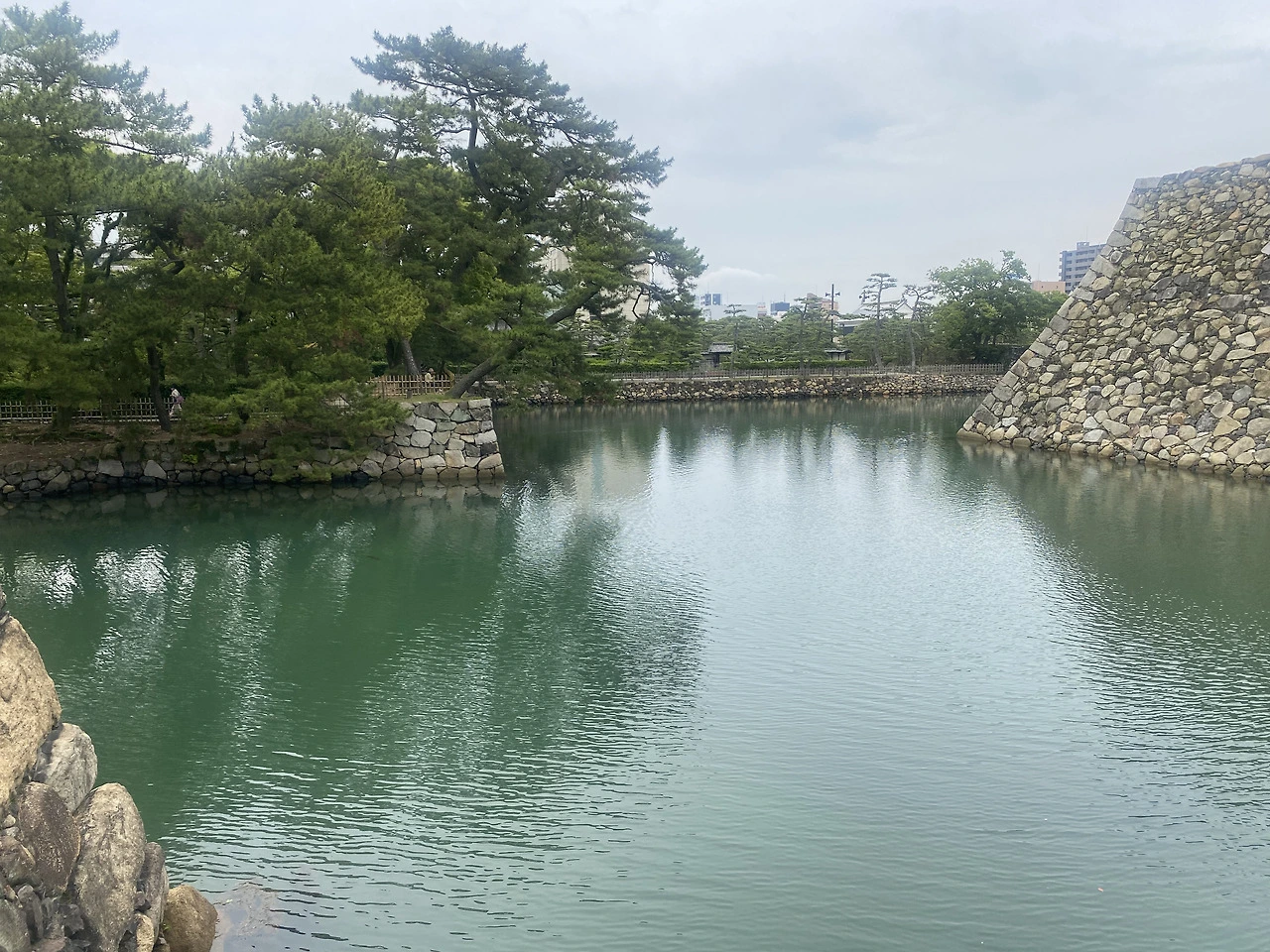잠깐 타카마쓰에 대해 설명하자면, 이곳은 원래 이코마 가문의 영지였다가, 도쿠가와 이에야스의 후손인 마쓰다이라 가문의 영지가 된 곳이다. 이 사누키 지방의 중심이 되는 타카마쓰 항 근처에 타카마쓰 성이 있었는데, 성의 건물들은 많이 해체되고 터만 남은 부분이 많다. 지금은 타마모 공원이라고도 부르는 이 성터는 아침에 산책하기에 딱 좋은데, 해자에 물이 채워져 있어서 뱃놀이도 가능한 것처럼 보였다. 뱃사공이 혼자 유유자적하게 나룻배를 끌고 있었다.