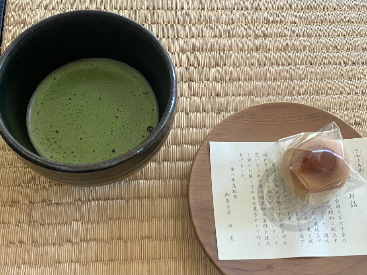 꽃과 나무들을 보는 것도 좋지만, 나도 이전 다이묘처럼 이곳에서 여유를 좀 더 즐기고 싶어서 정원 안의 찻집에 들어가서 녹차를 한잔 했다. 600엔에 화과자와 말차 한잔이 나왔는데, 30분 정도 별장 거실에 앉아서 차를 마시고 여유롭게 정원을 구경하며 멍을 때렸다.
