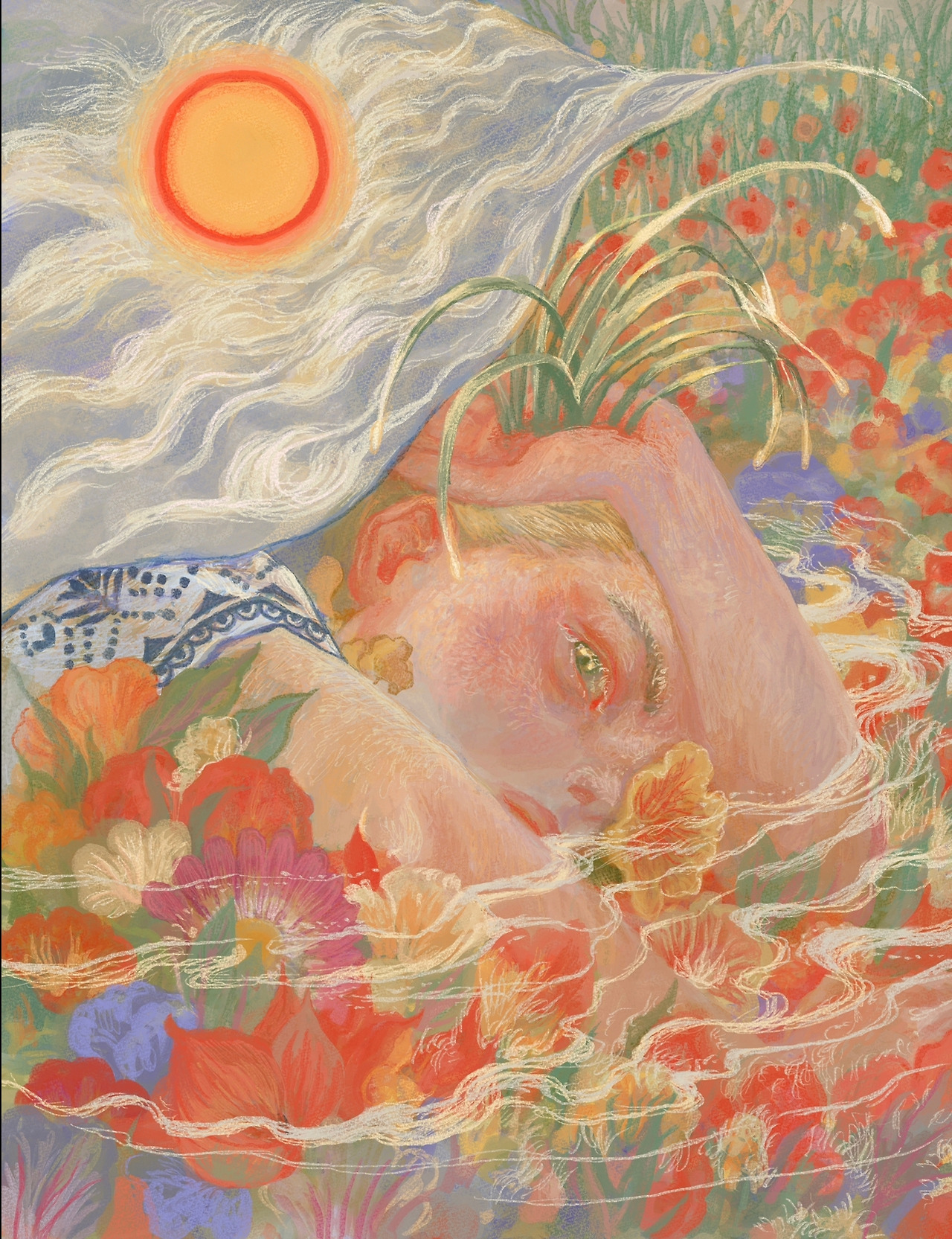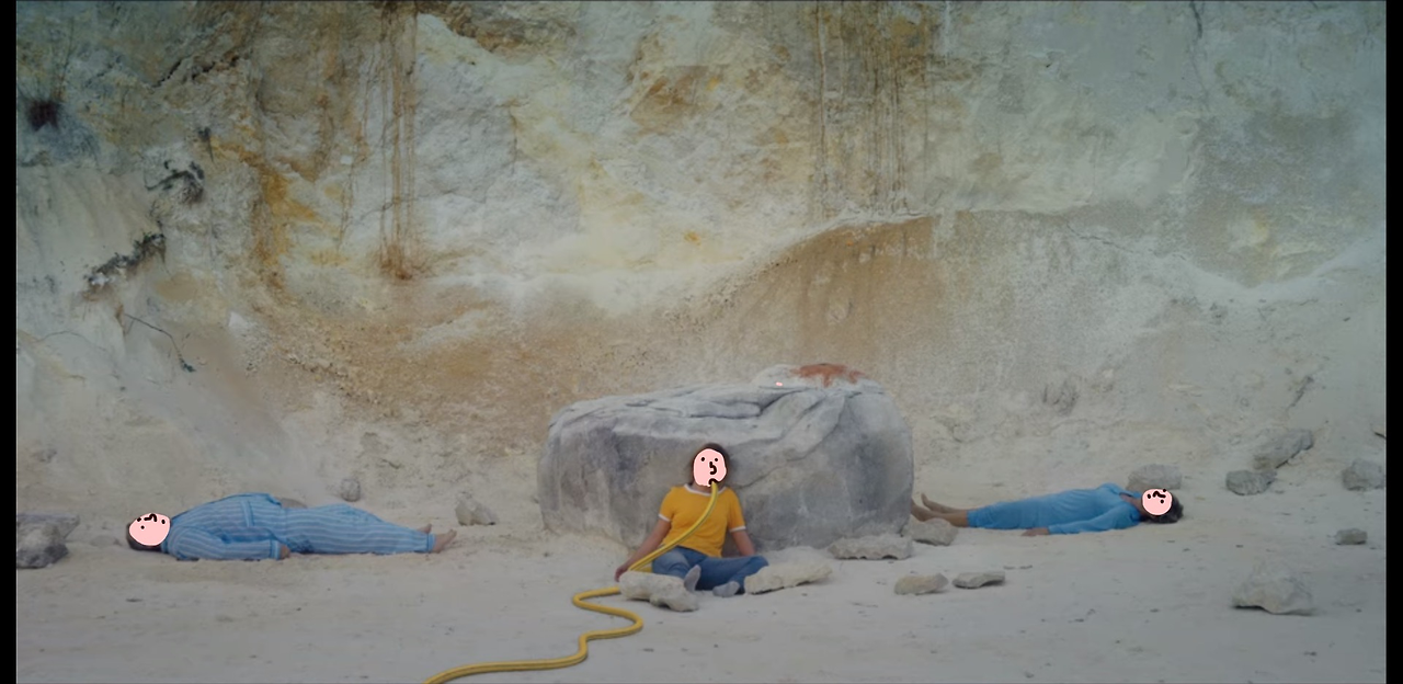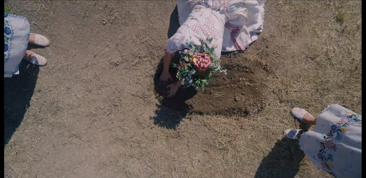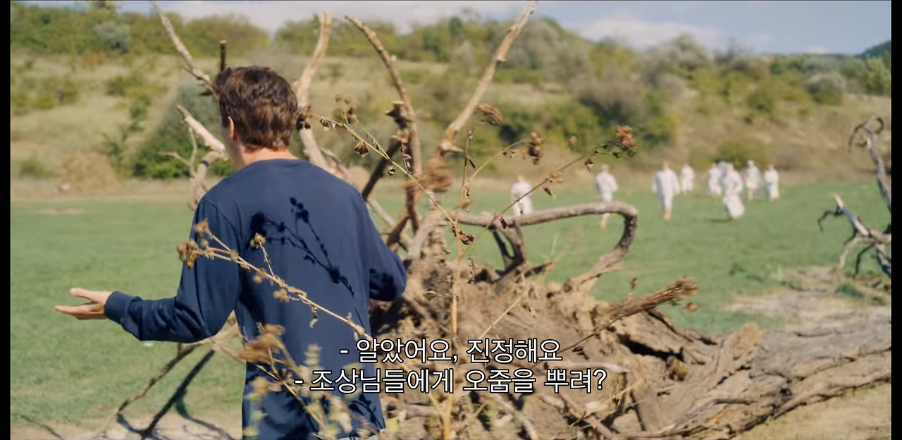 시각도 인물도 혼돈하며 혼란스러워하는 주변과 달리 대니는 바람을 마시다 ‘대지에서 올라오는 이 기운’을 느껴보라는 누군가의 말에 땅과 일체가 되어 풀이 자라난 손을 보게 된다.