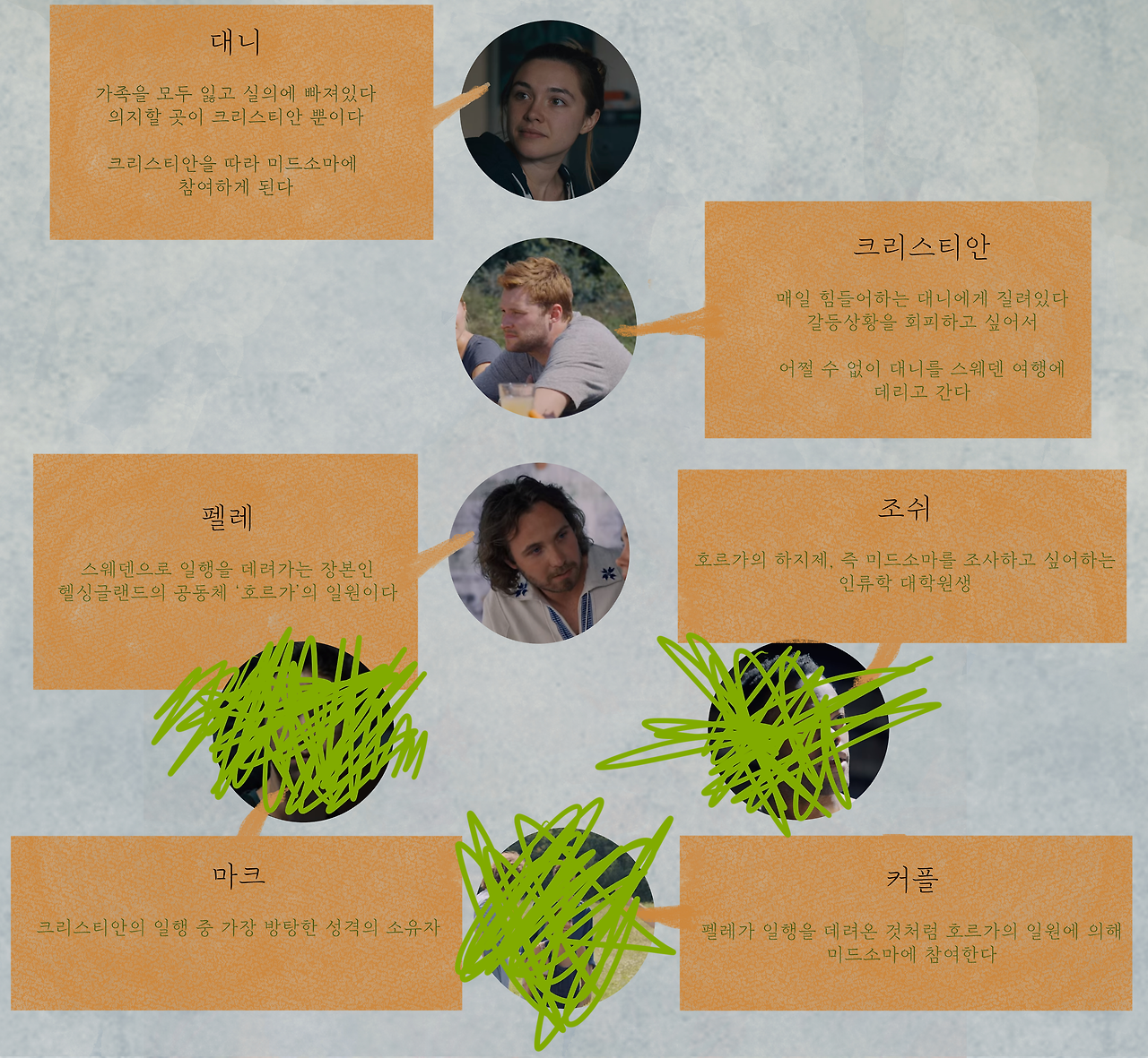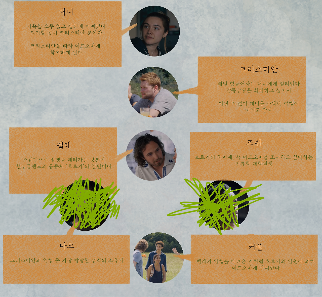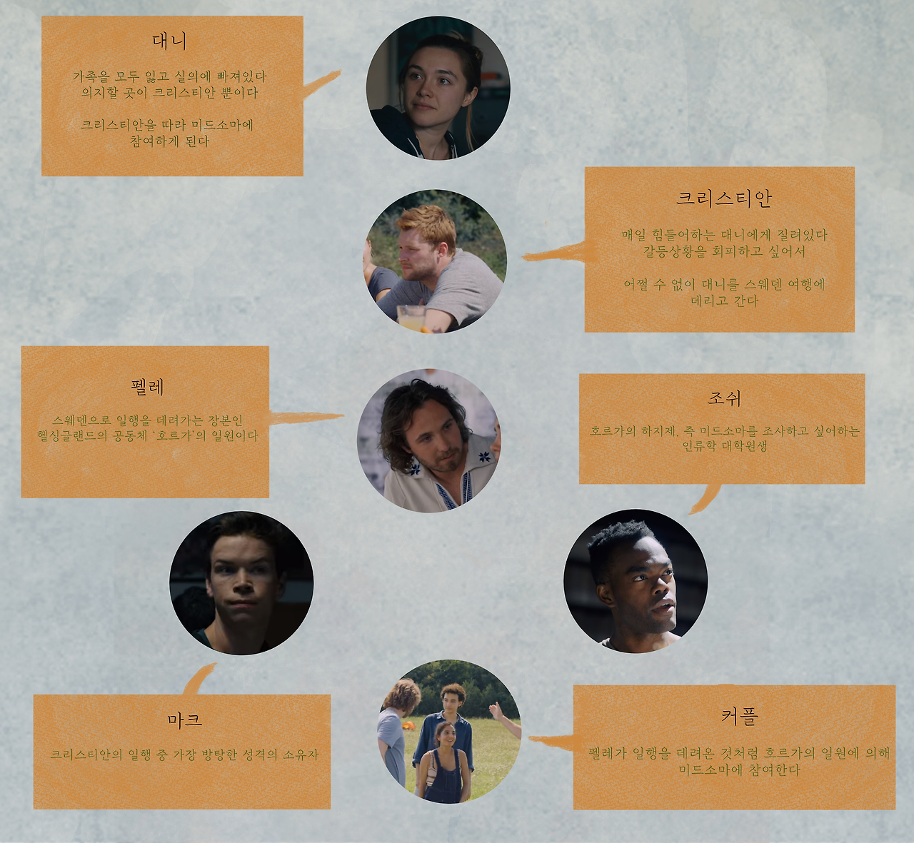 즉, 일행의 입장이 아닌, 이 영화에 식물적 관점을 가미해 이 기이한 집단 호르가와 대니의 입장에서 아래와 같은 순서로 조명하고자 한다.