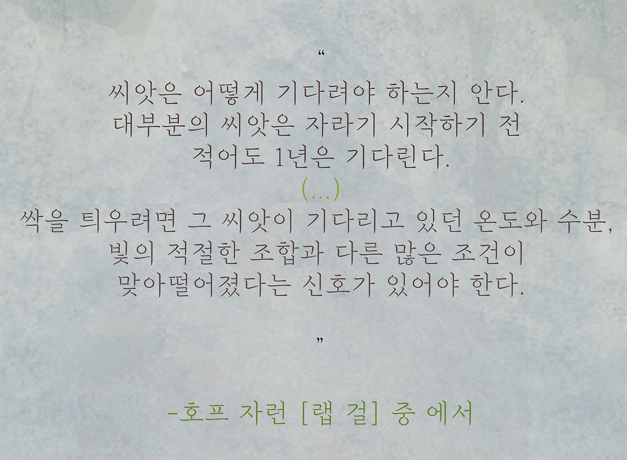 겨울은 어떤 계절인가. 씨앗도 아직 땅 속에서 얼어있고, 눈에 식물들이 모두 앙상하고 야위어있는 계절. 프롤로그에서 대니가 꼭 그런 모습이다.