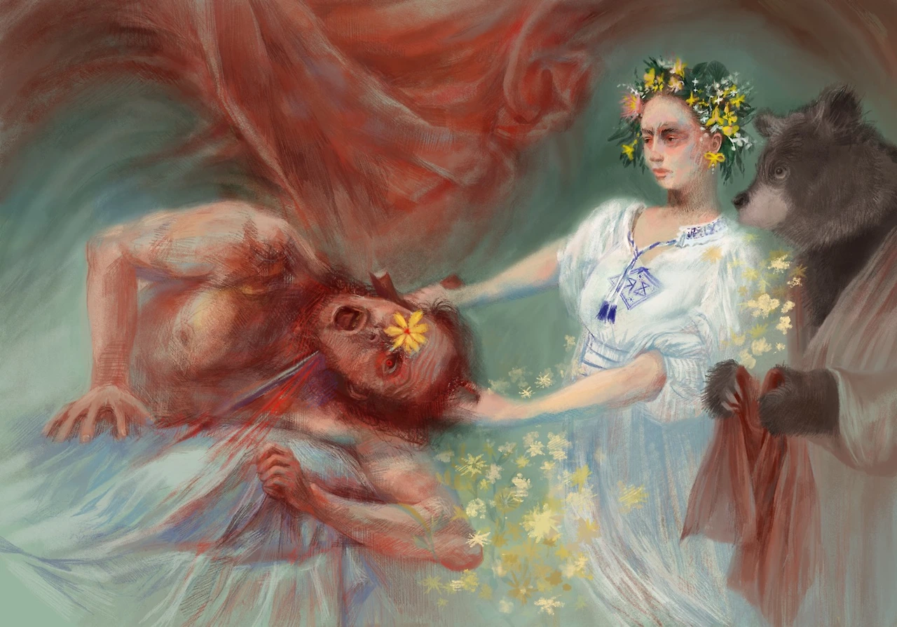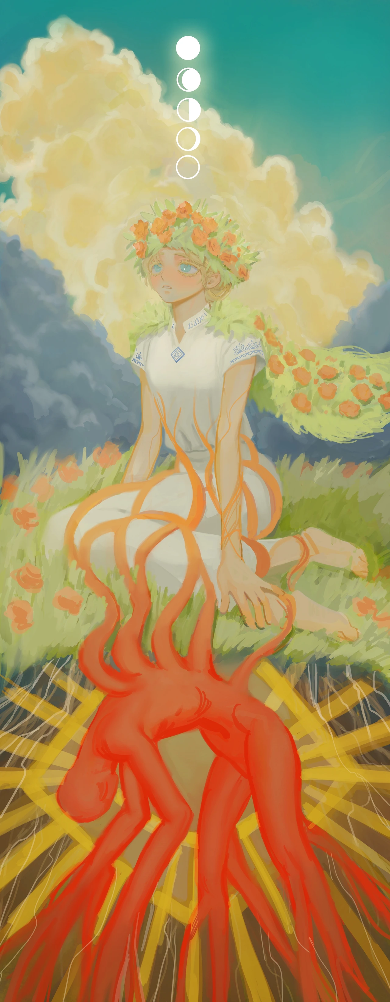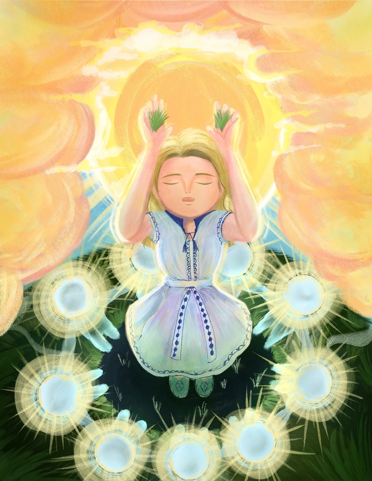이점에서 대니가 성장했다고 느꼈고 미드소마에서 대니의 성장을 가장 인상 깊게 보았기에 핵심주제로 정하고 일러스트 구상을 시작하였다.