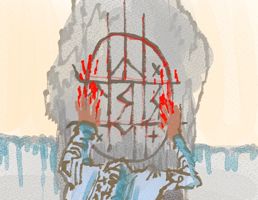 악몽 같은 끔찍한 모습으로 결국 자신의 목숨을 잃게 되는 장면 또한 크리스티안의 모습과 닮아있어 영화와 작품을 섞어 그려보고 싶었다.