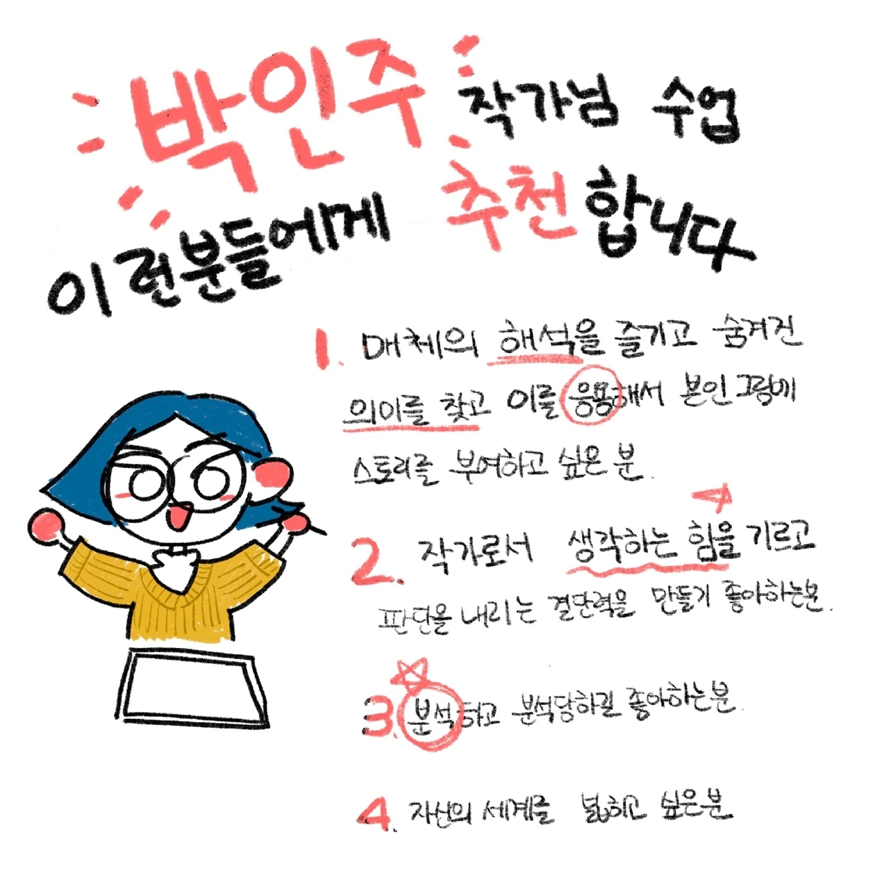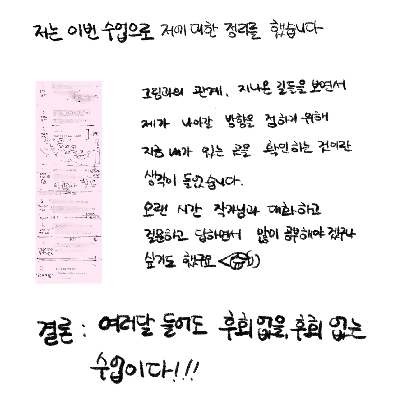 그동안 좀 더 발전하고 공부해서 작가님 수업에 또 참여하고 싶습니다.