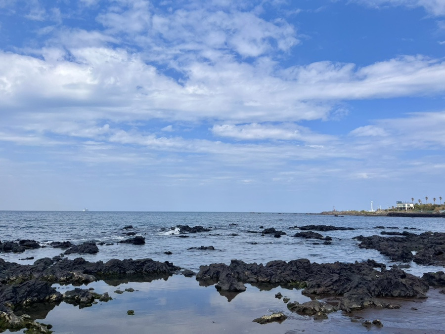 철분이 함유되어 모래가 검은 색인 삼양해수욕장에는 맨발걷기와 지압운동을 하는 주민들이 많아, 해수욕장보다는 도를 닦는 계룡산에 가까워보였다. 맨발걷기는 뒤처리가 어려울 것 같아 손으로 모래를 만져봤는데 너무 보드랍고 따뜻해서 마치 닥스훈트 미니어처 배를 쓰다듬는 기분이 들었다. 바다 색도 모래를 머금은 듯 약간 검은 색이었는데, 사이사이 하늘이 비춰 오묘한 느낌이었다.