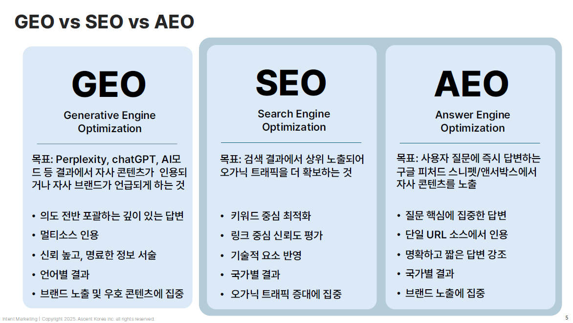 요즘 마케팅 업계에서 AEO, GEO, LLM SEO 같은 말이 부쩍 많이 들린다.