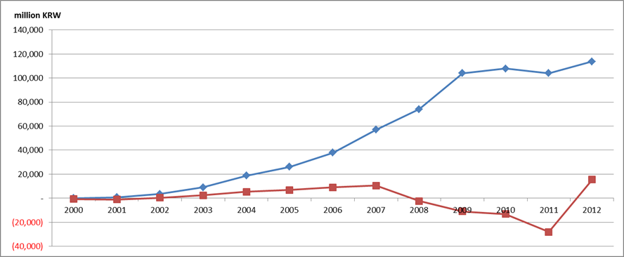 2010년 Layoff 이후, 2011년에는 기존 닷컴 고객 중심에서 대기업 고객 중심으로의 매출구조 전환으로 인해 매출총액은 줄었지만 하반기부터 월 영업이익이 흑자로 전환되었고, 2012년에는 매출액과 영업이익 모두 창사 이래 최고를 기록하는 놀라운 성과를 기록했다.