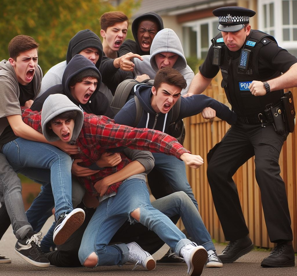 이처럼 법의 맹점을 잘 알고 있는 청소년들은 맹렬히 경찰관에게 달려든다.