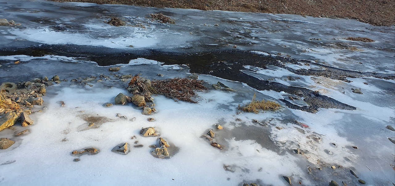 햇살의 손길이 닿지 않은 구역은 제대로 겨울 풍경을 만들었고 지나가던 나를 멈춰 세웠다. 깊은 산골짜기에서 졸졸 흐르는 시냇물이 언 것도 아니고, 넓디넓은 한강 물이 살짝 얼어붙으면서 신비로운 풍경을 연출한 것도 아니었다. 하얗게 꽁꽁 얼어붙은 동네 탄천일 뿐인데, 유독 다정하게 나를 붙잡길래 사진을 찍으며 자연스럽게 추억여행을 떠났다.