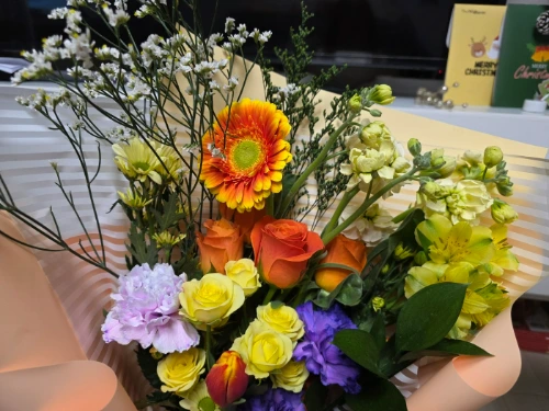 작년 말, 딸아이의 졸업식 덕분에 화사한 꽃다발이 생겼다. 주인공은 딸인데, 덩달아 내가 신났다. 꽃을 좋아하지만, "그냥" 살 수 없었다. 겨울이 지나 봄이 오면 꽃이 피겠지, 그날을 기다려야 했는데 엄동설한 꽃밭에 앉아 있는 것처럼 거실에서 은은한 향이 코끝에 전해졌다. 핑크 노랑 주황 보라. 장미 튤립 국화 카네이션 이름도 낯선 브바르디아까지. 연말 시상식의 주인공이라도 된 냥, 꽃다발을 들고서 지나간 2025년과 다가올 2026년에게 감사 인사를 올렸다.