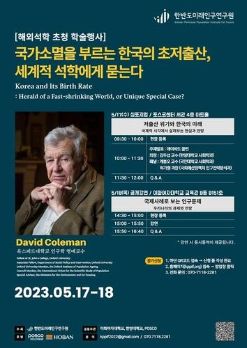 2006년 『유엔인구포럼』에서 저명한 인구학자인 데이비드 콜먼 교수는 우리나라의 저출생 현상(당시 우리나라 출산율은 1.13명)이 지속되면 한국은 지구상에서 사라지는 첫번째 인구소멸국이 될 것이라는 충격적인 전망을 내놓았다. 17년이 지난 지금, 그의 전망은 변한 게 없다. 콜먼 교수는 최근 한 학술행사에서 방문할 때마다 출산율이 낮아지고 있는 한국의 현실이 놀랍다면서 ‘한국다운 것’이 변해야 저출생 문제가 풀린다며 해법을 제시했다.