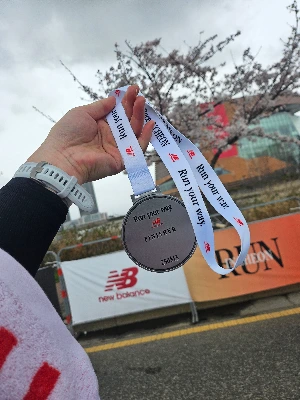 두근거리는 심장을 다독이며 잠이 든 다음 날 워낙 긴장을 한 탓인지 알람이 울리기도 전에 눈이 번쩍 떠졌다. 내가 이번에 신청한 대회는 인천 송도에서 열리는 '뉴발란스 하프 마라톤'. 하필 대회 당일날 온종일 비예보가 있어 걱정을 엄청 하면서 잠들었는데 다행히도 날씨요정이 어디 가지는 않았는지 오전 비예보가 싹 가셨다. 아쉽게도기온은 4월 중 최하로 내려갔지만.