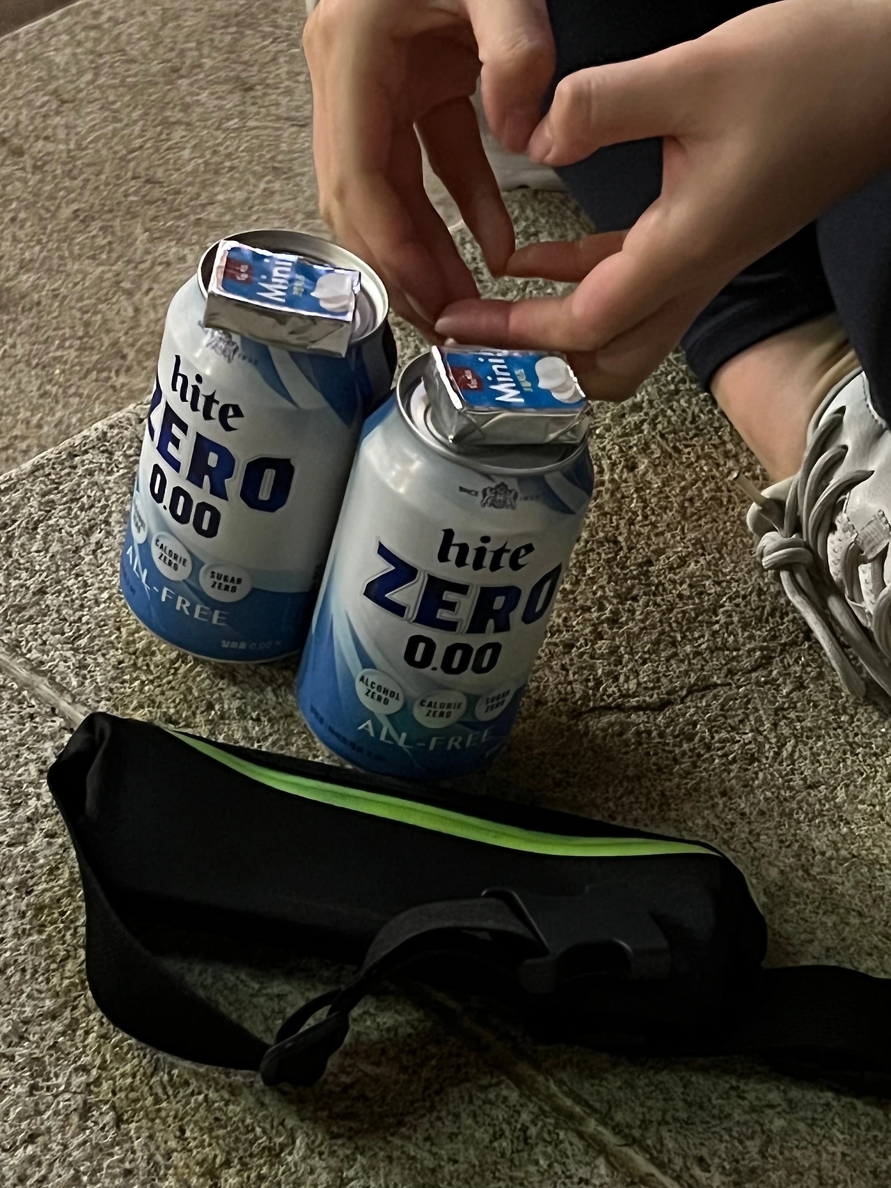 분명 시작할 때 우리는 3km만 뛰기로 했던 거 같은데 신나게 조금만 더, 조금만 더를 하다 보니 5km 지점을 통과하게 됐다. 집에 가는 지점인 5.8km에서 멈추니 땀을 말리는 시원한 바람이 짜릿하게 느껴졌다. 그리고 우리는 돌아가는 길에 캔맥주 하나씩 사들고 사이좋게 바닥에 주저앉아 먹었다.