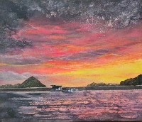 하늘과 바다가 동시에 물들고, 집들과 조형물, 나무들이 차례차례 노을빛에 잠식당하는 그 모습이