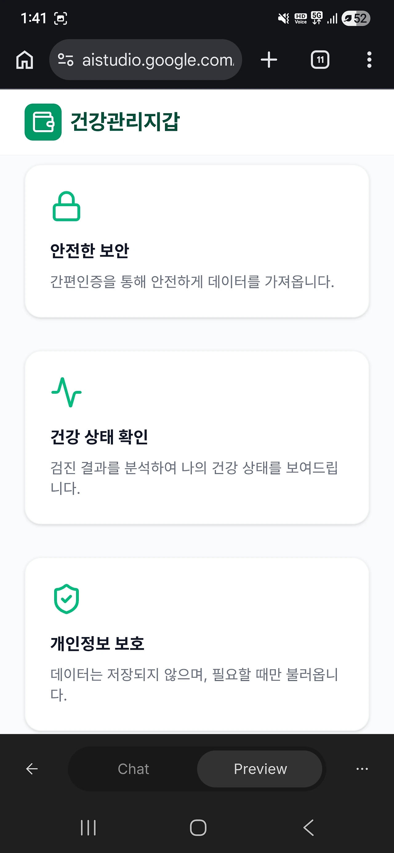 Google AI Studio를 열고, 내가 불편한 것을 말로 설명하면 된다. 건강 데이터가 흩어져 있어서 불편하다면 그렇게 말하면 되고, 매달 가계부를 손으로 정리하는 게 귀찮다면 그렇게 말하면 된다. AI가 어떻게 만들면 되는지 알려준다.