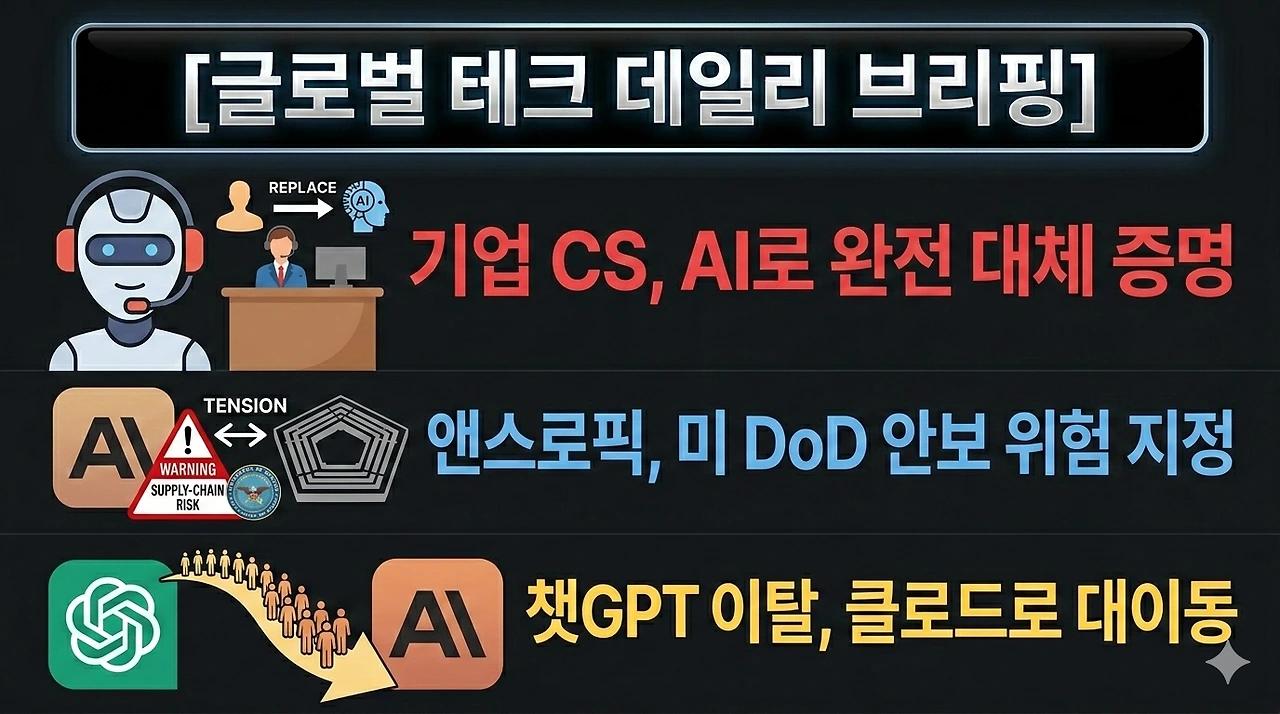 미 국방부(DOD)가 주요 AI 기업인 앤스로픽(Anthropic)을 안보를 위협할 수 있는 '공급망 위험(Supply-chain risk)'으로 공식 지정함.